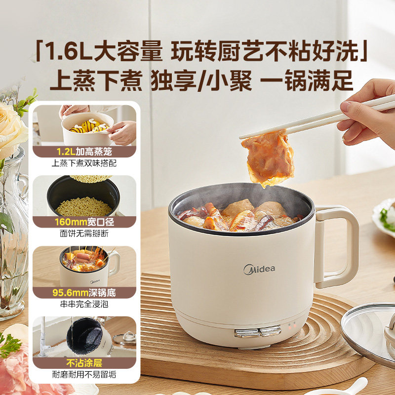 美 宿舍电煮锅小型泡面锅小功率蒸煮一体多功能电锅家用2025新款