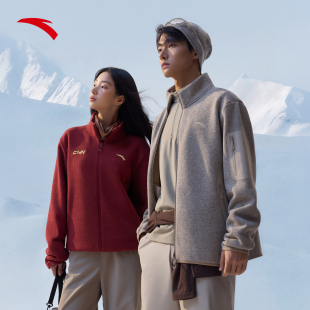 安踏POLARTEC抓绒外套 新年红色加绒外套户外夹克 火壳男女春季