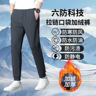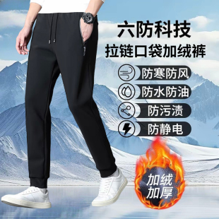 六防运动长裤 加绒加厚高弹力防风保暖宽松直筒休闲裤 子 冬季 男士