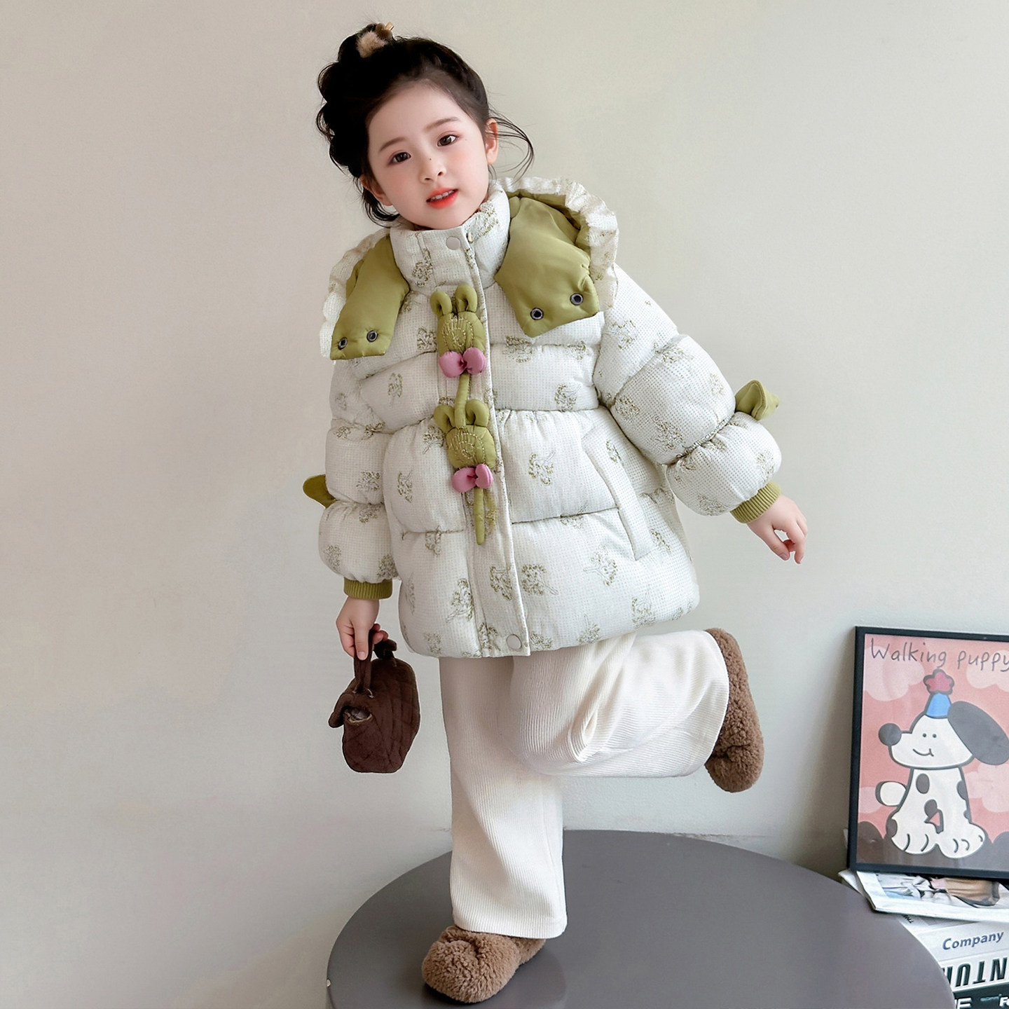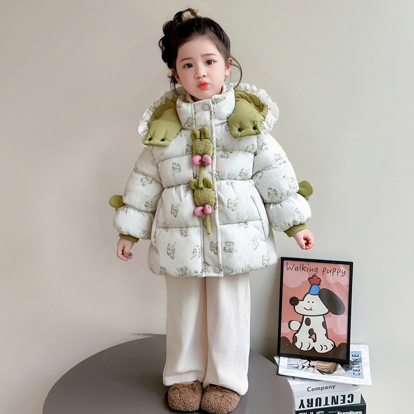小童加绒加厚棉袄外套小女孩冬装 韩版 棉衣 2024新款 女宝宝棉服冬季