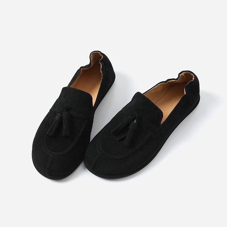 乐福鞋 ED08040 W羊猄皮平底圆头一脚蹬流苏奶奶鞋 女 茉莉雅集
