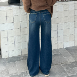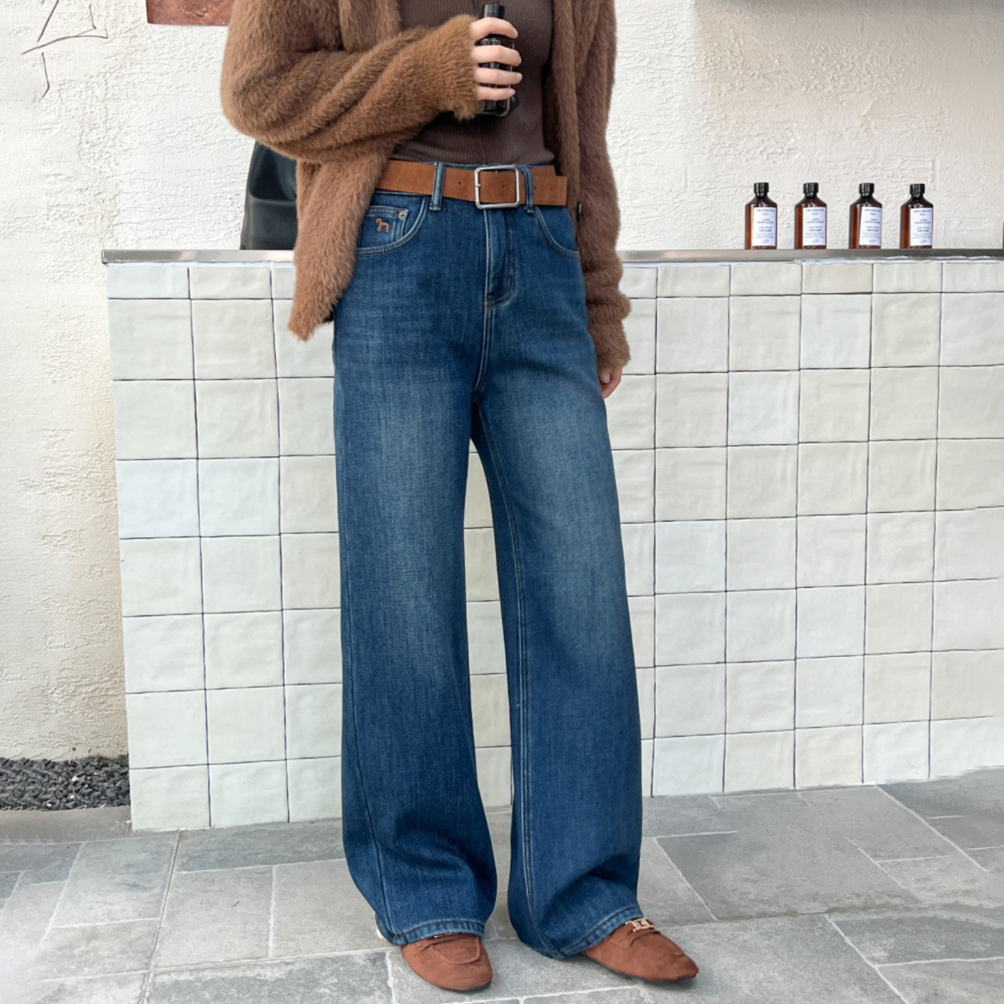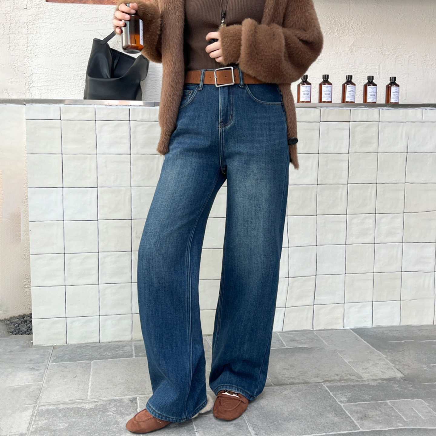显瘦女牛仔直筒阔腿裤 2025冬季 Jeans阿凡牛A5459复合厚绒保暖窄版