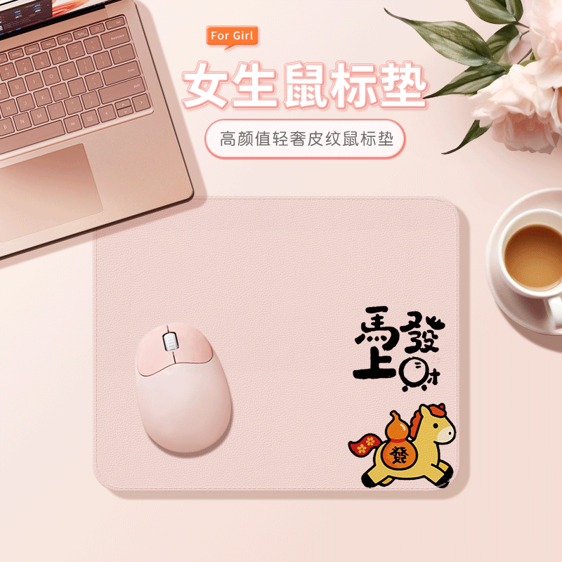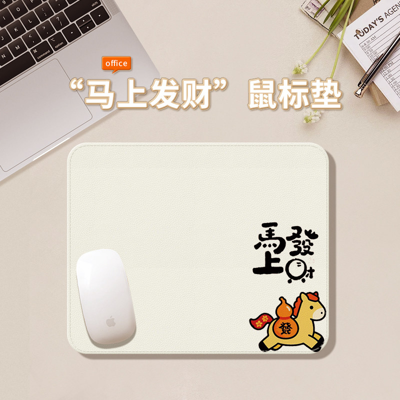 马年鼠标垫高级皮纹女生高颜值办公室工位电脑滑鼠垫子小号新年款