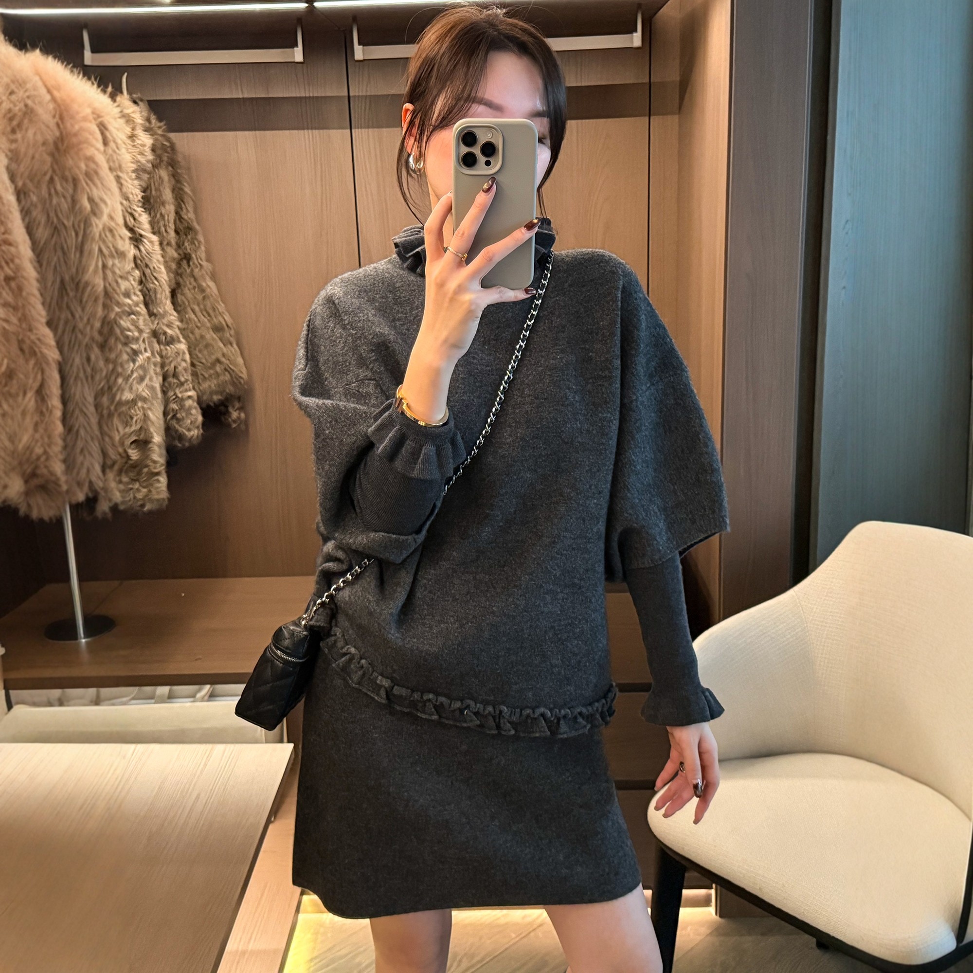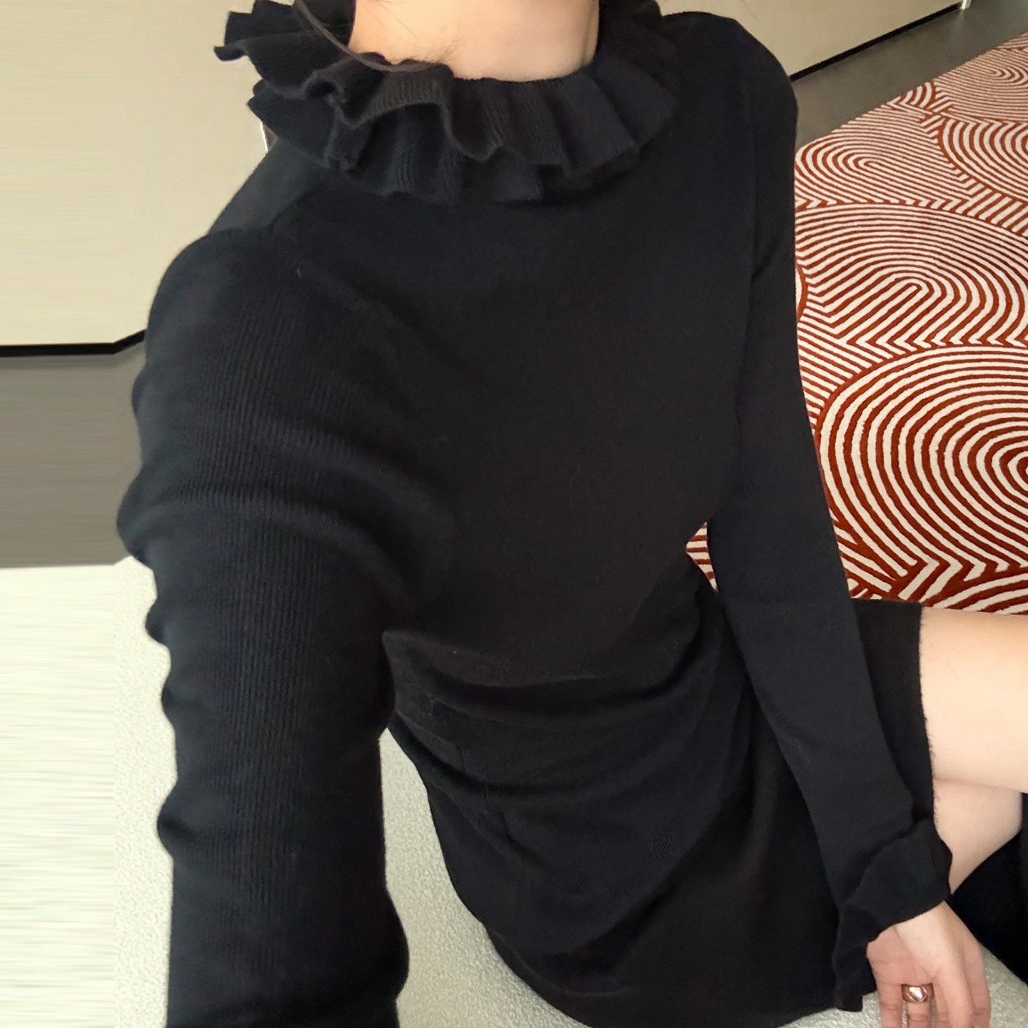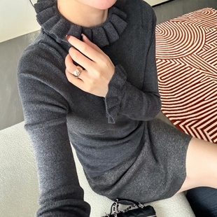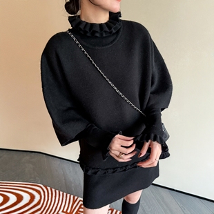 喇叭袖 木耳边拼接羊毛针织衫 欧货女装 新款 毛衣潮 女欧洲站2025冬装