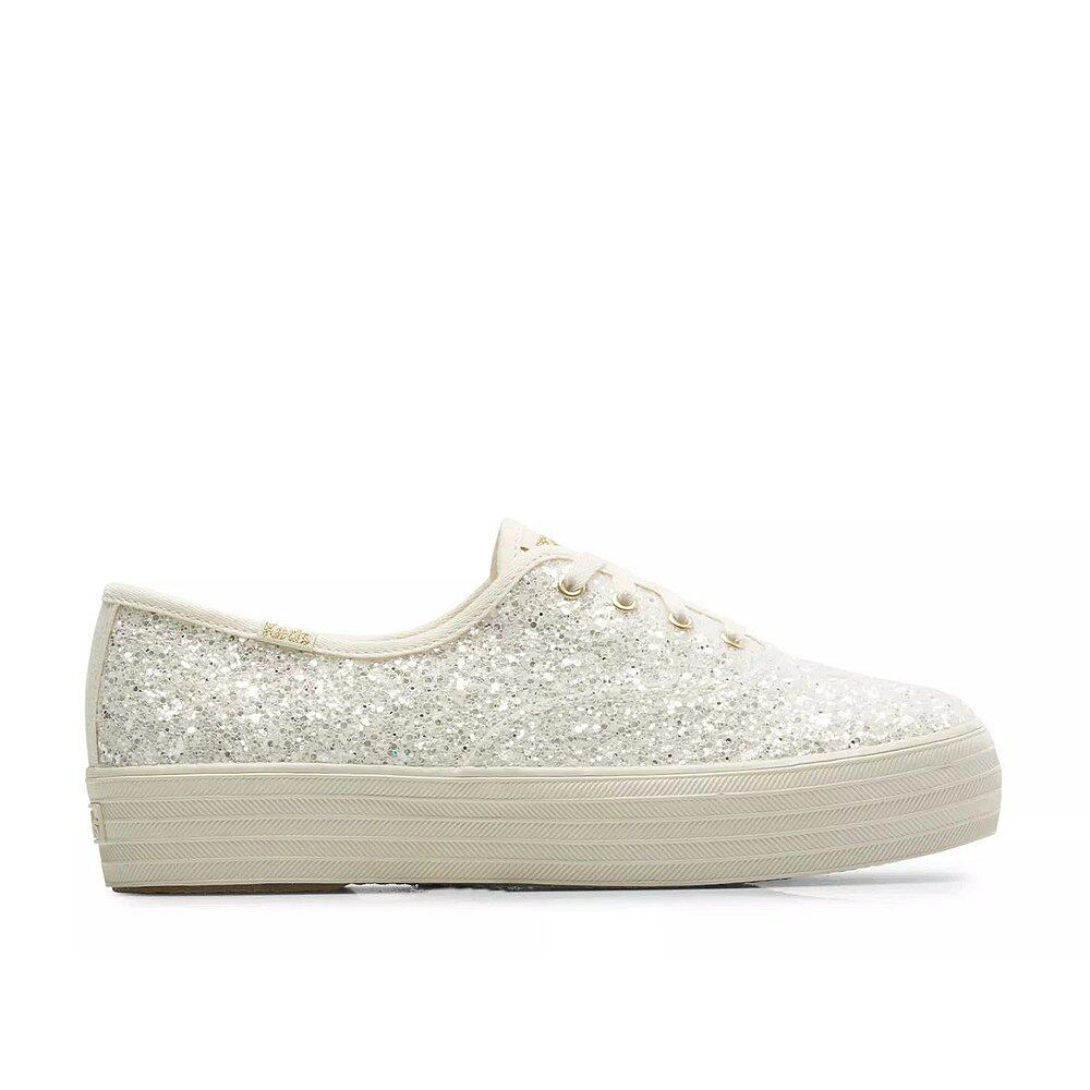 Women Top Fashion Plat Low Sneakers Glitter 自营Keds Cream