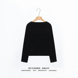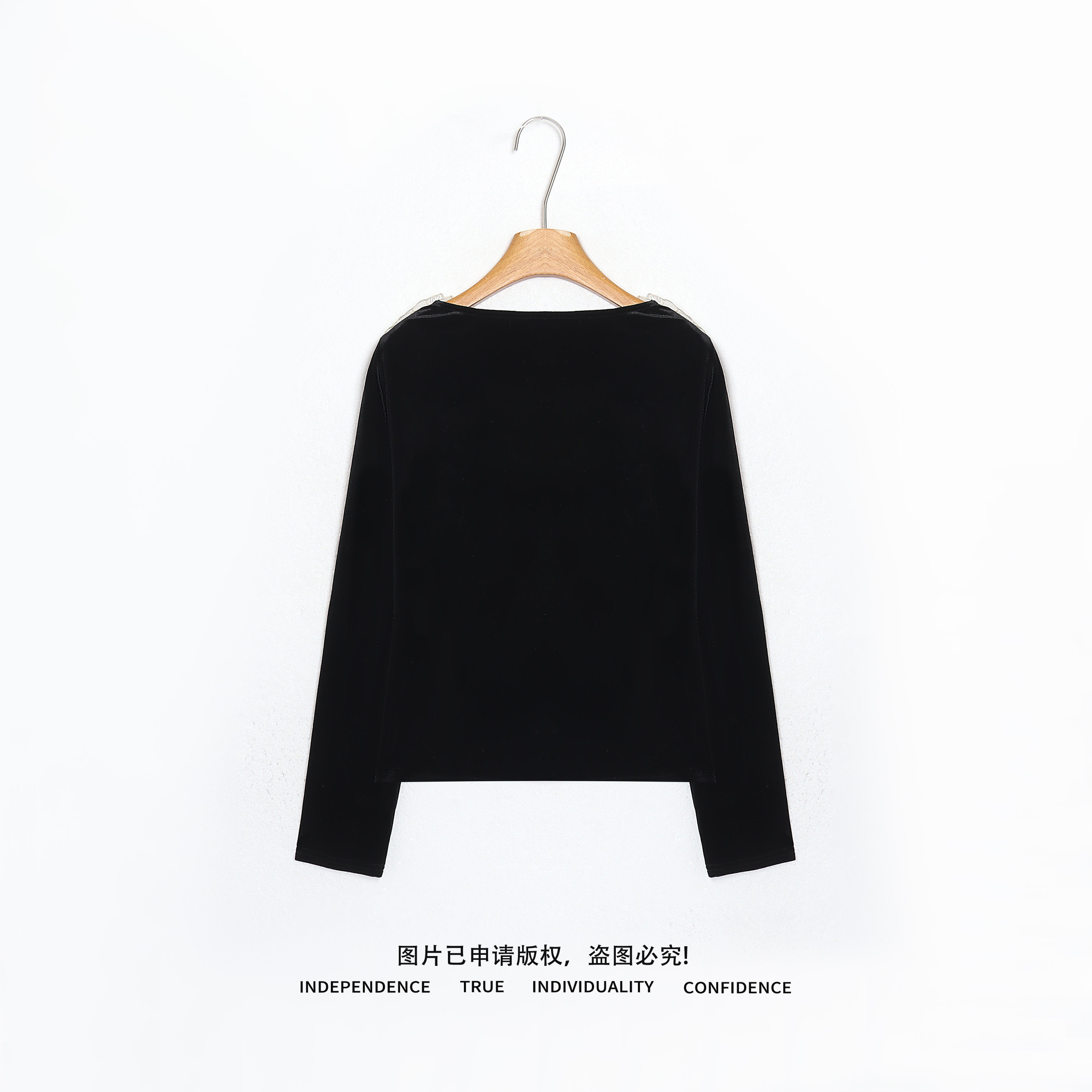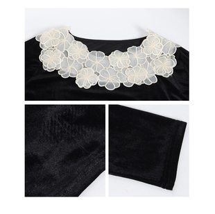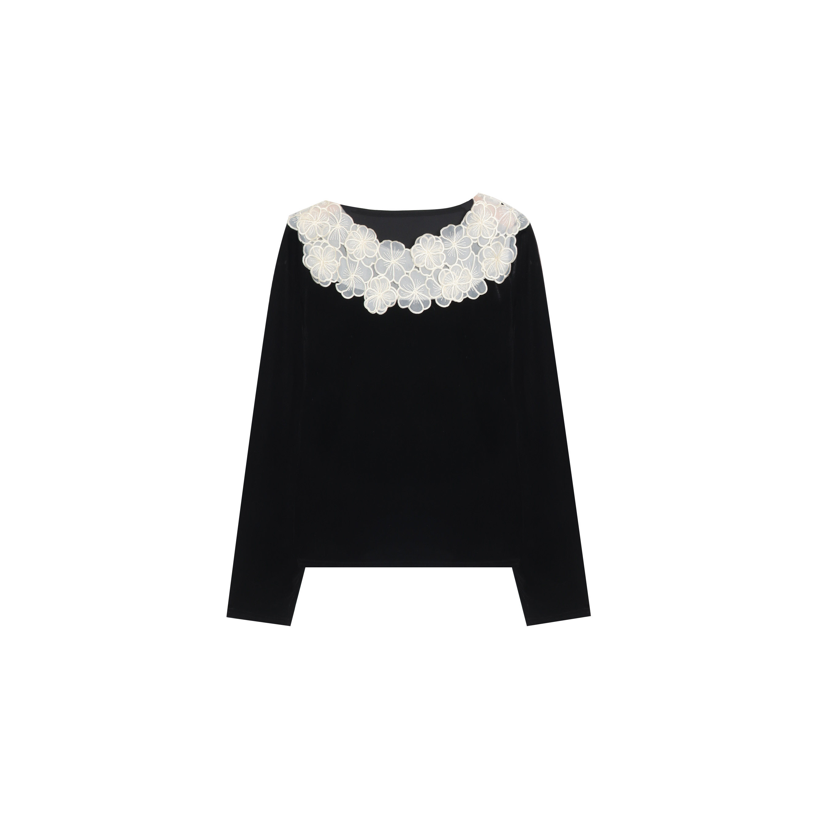 显瘦设计感长袖 温温 女冬季 立体花朵丝绒黑色衬衫 上衣2115 相意