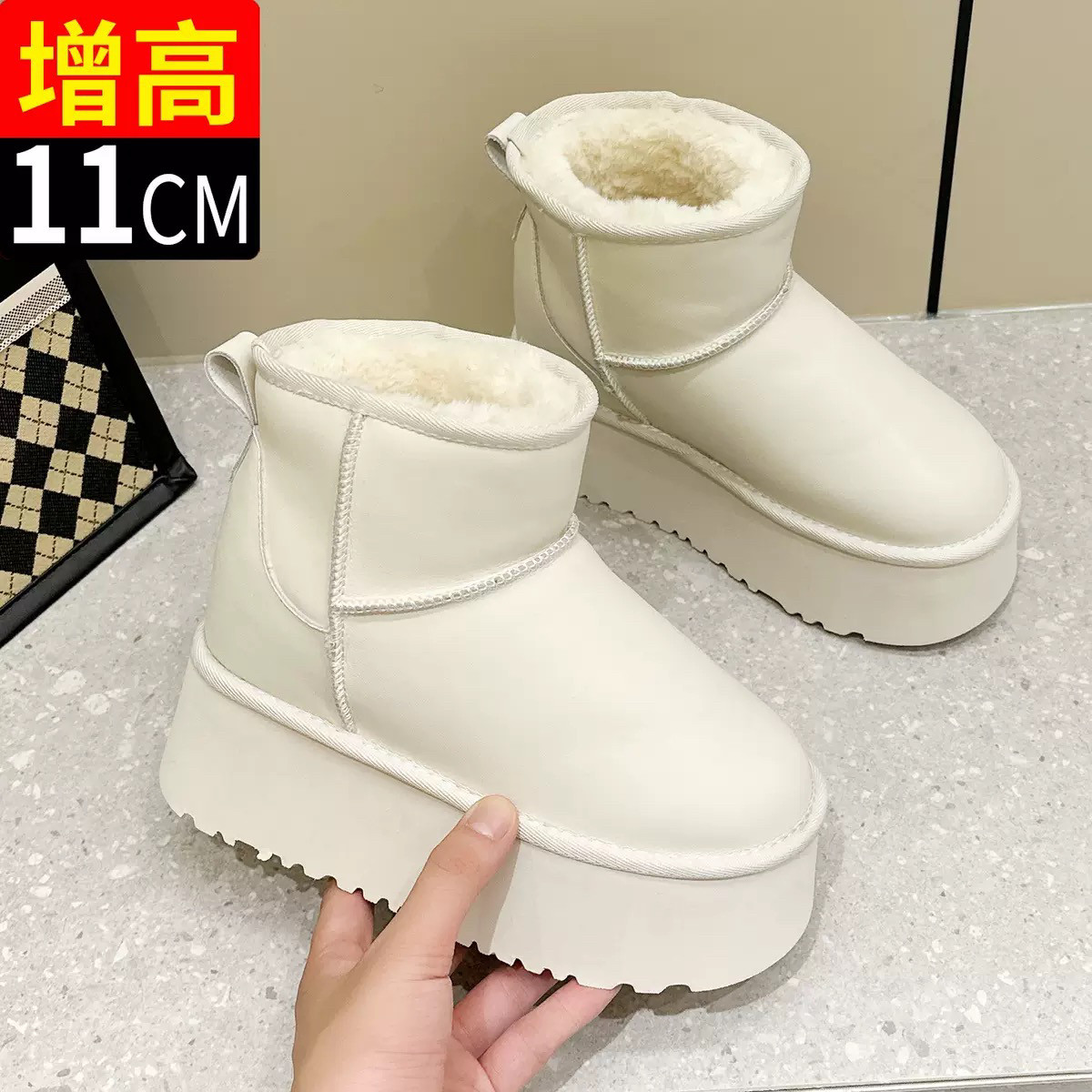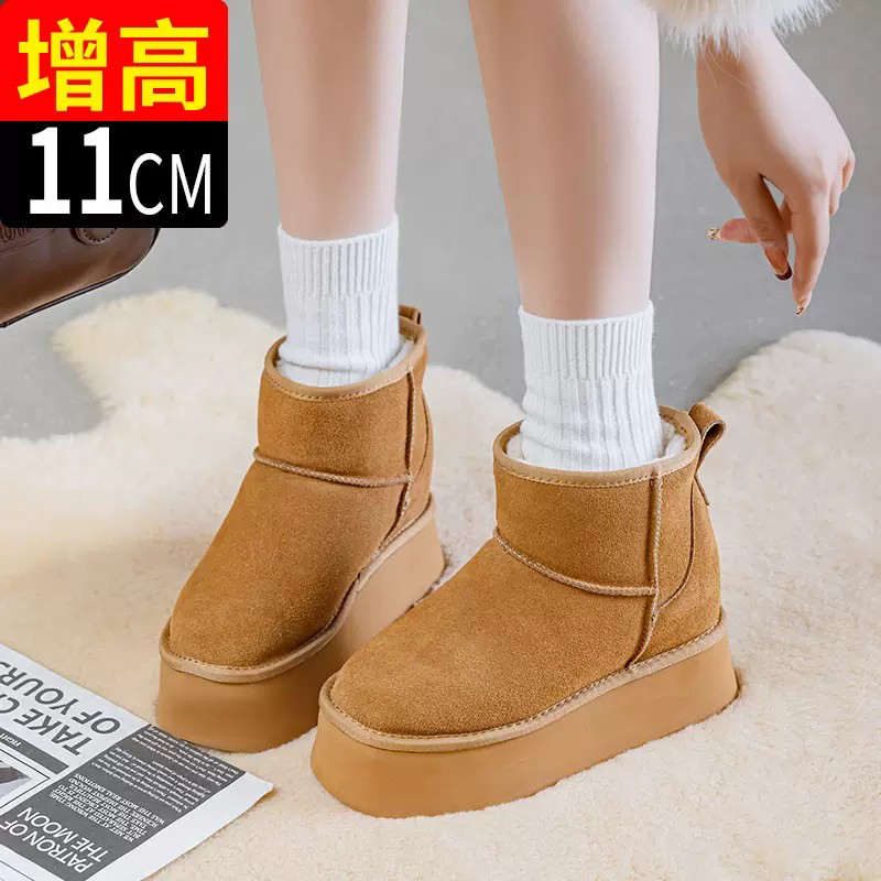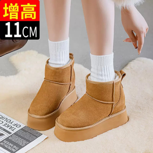 网红增高厚底保暖加绒外穿时尚 女冬季 雪地靴短靴 防水棉鞋 细细条