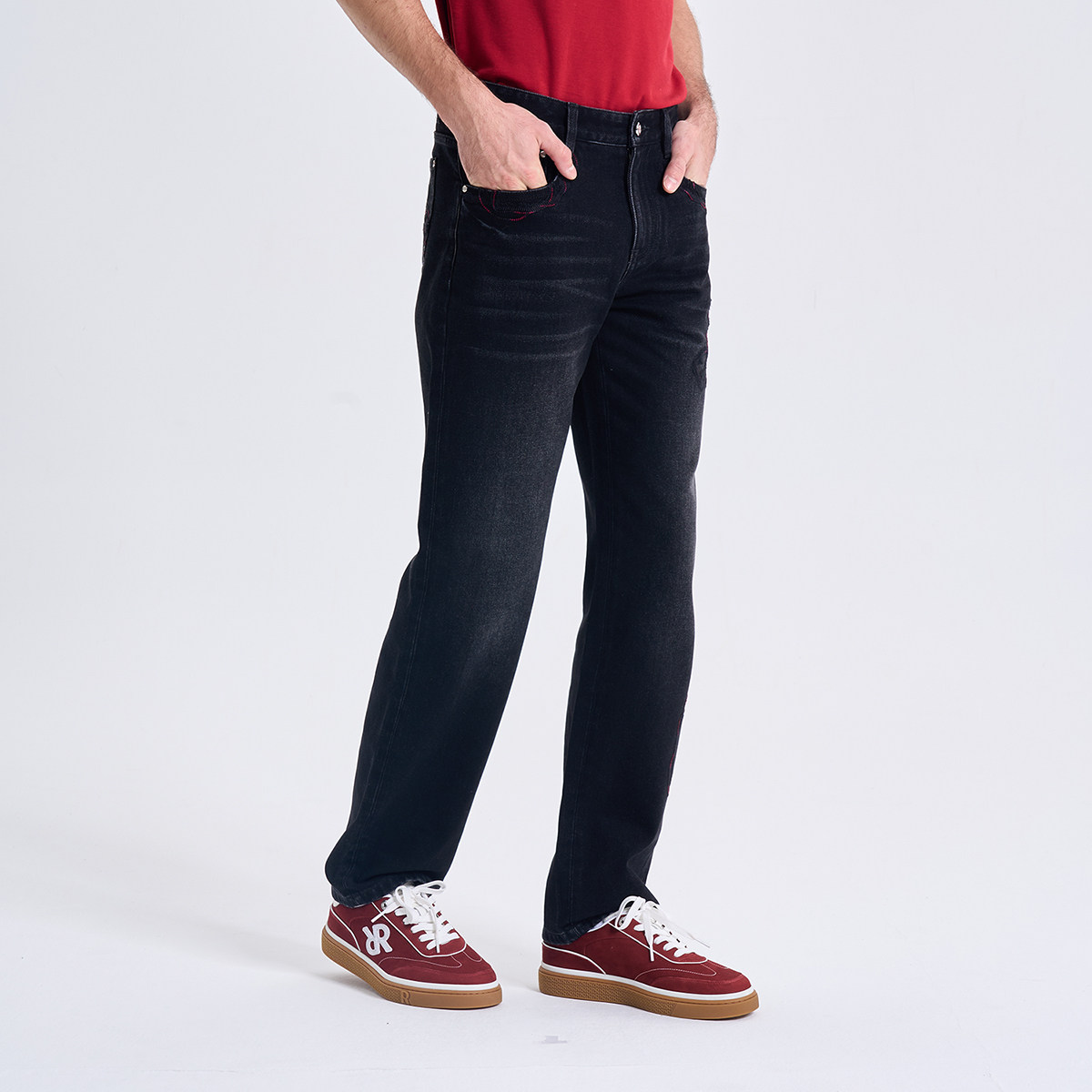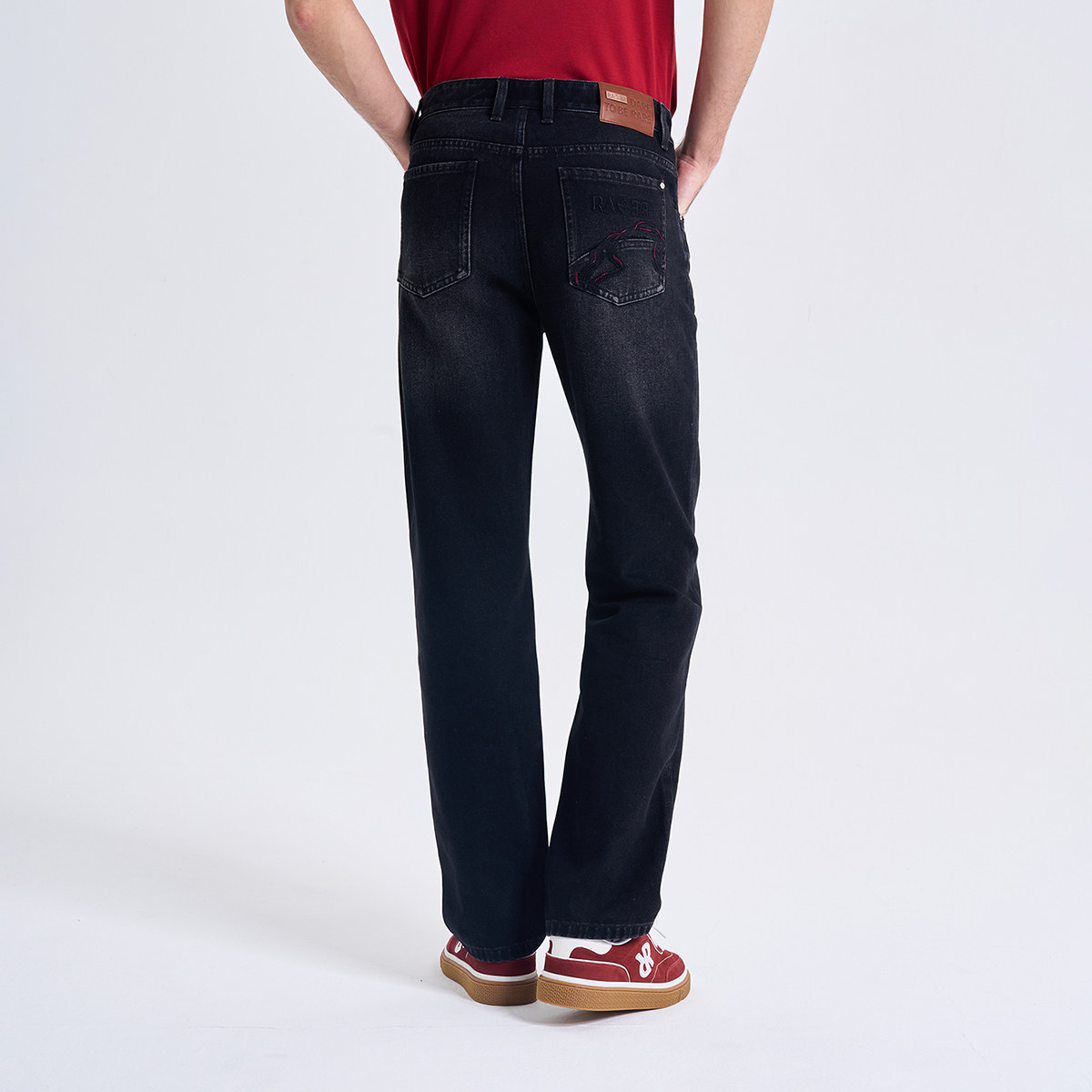 男立体花型刺绣黑色牛仔裤 宽松直筒长裤 2026春夏新款 RARE威雅男裤