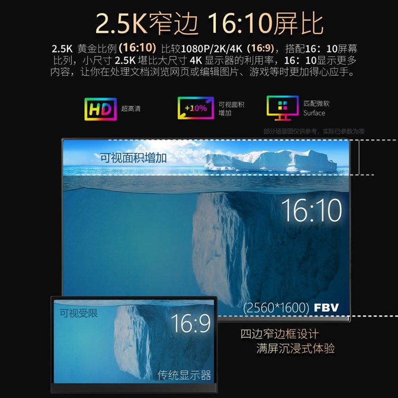 16英寸便携屏2.5K144HZ电竞触控高刷电脑显示器笔记本副屏超窄边