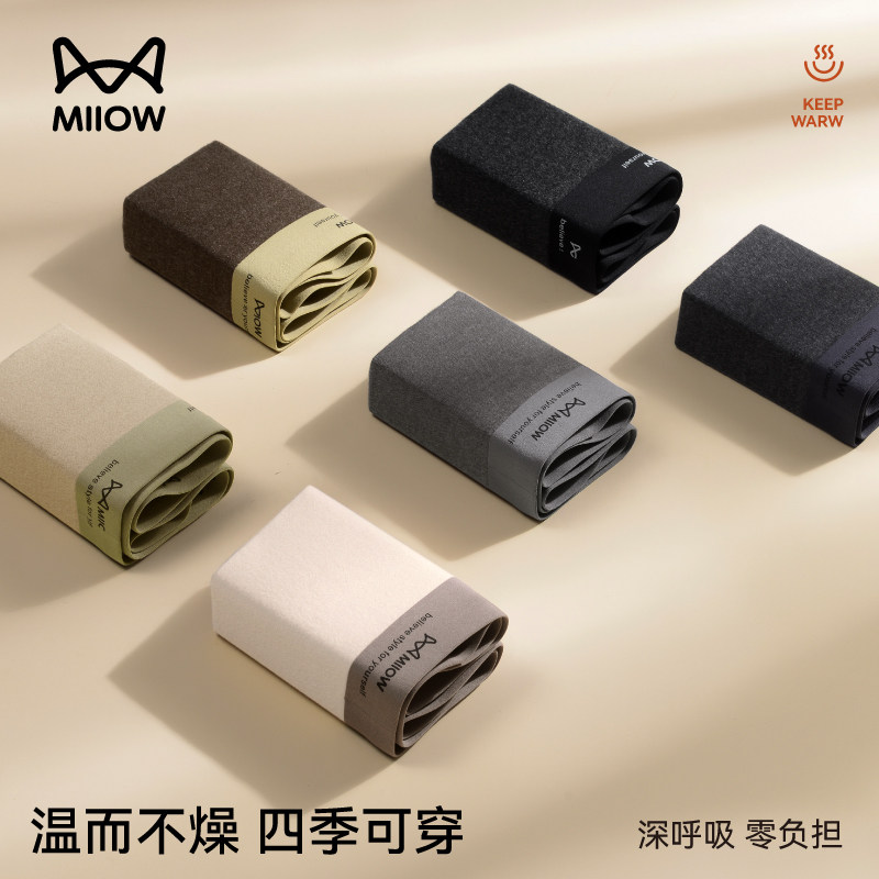四角短裤 2025新款 男式 猫人男士 头男款 男生冬季 透气平角裤 德绒内裤