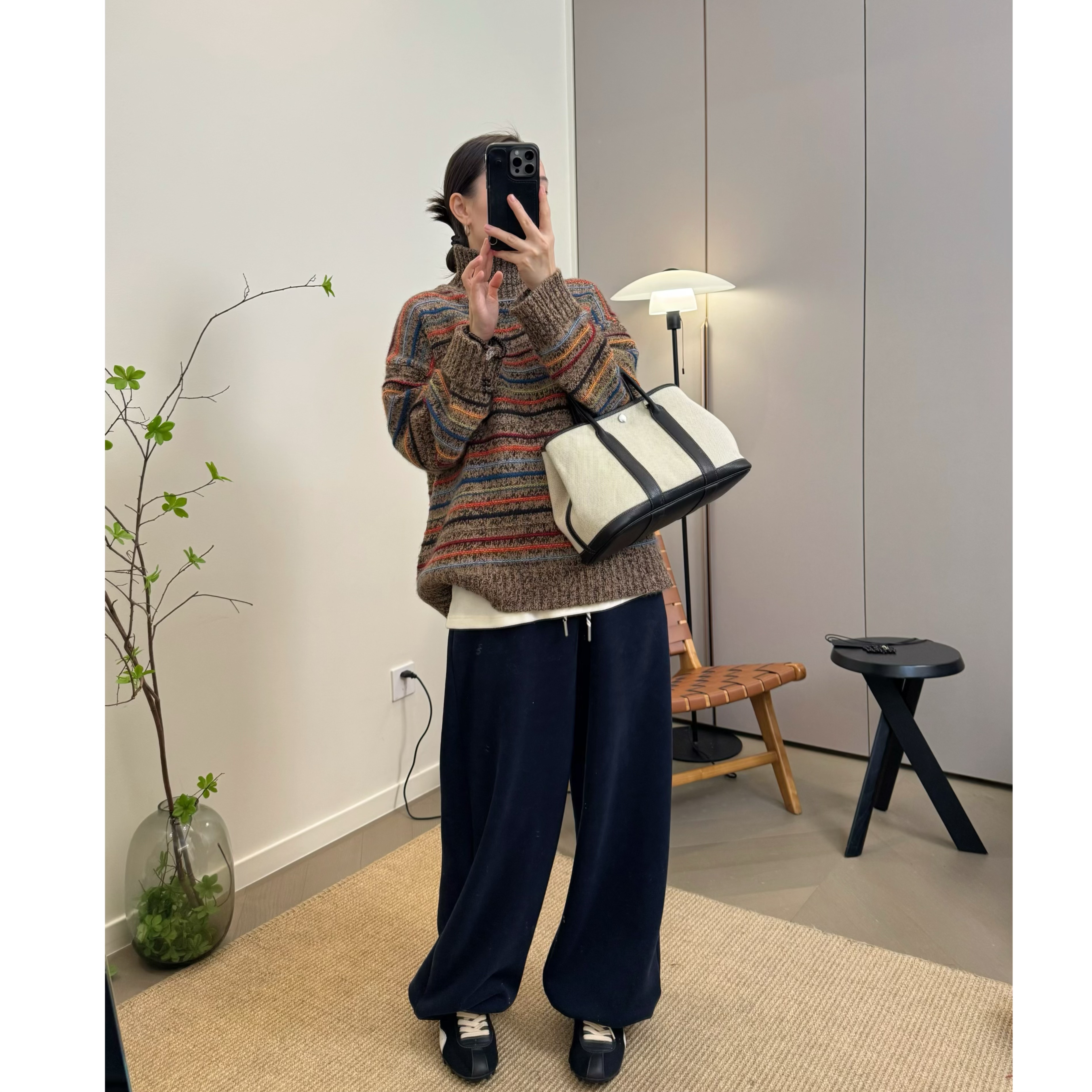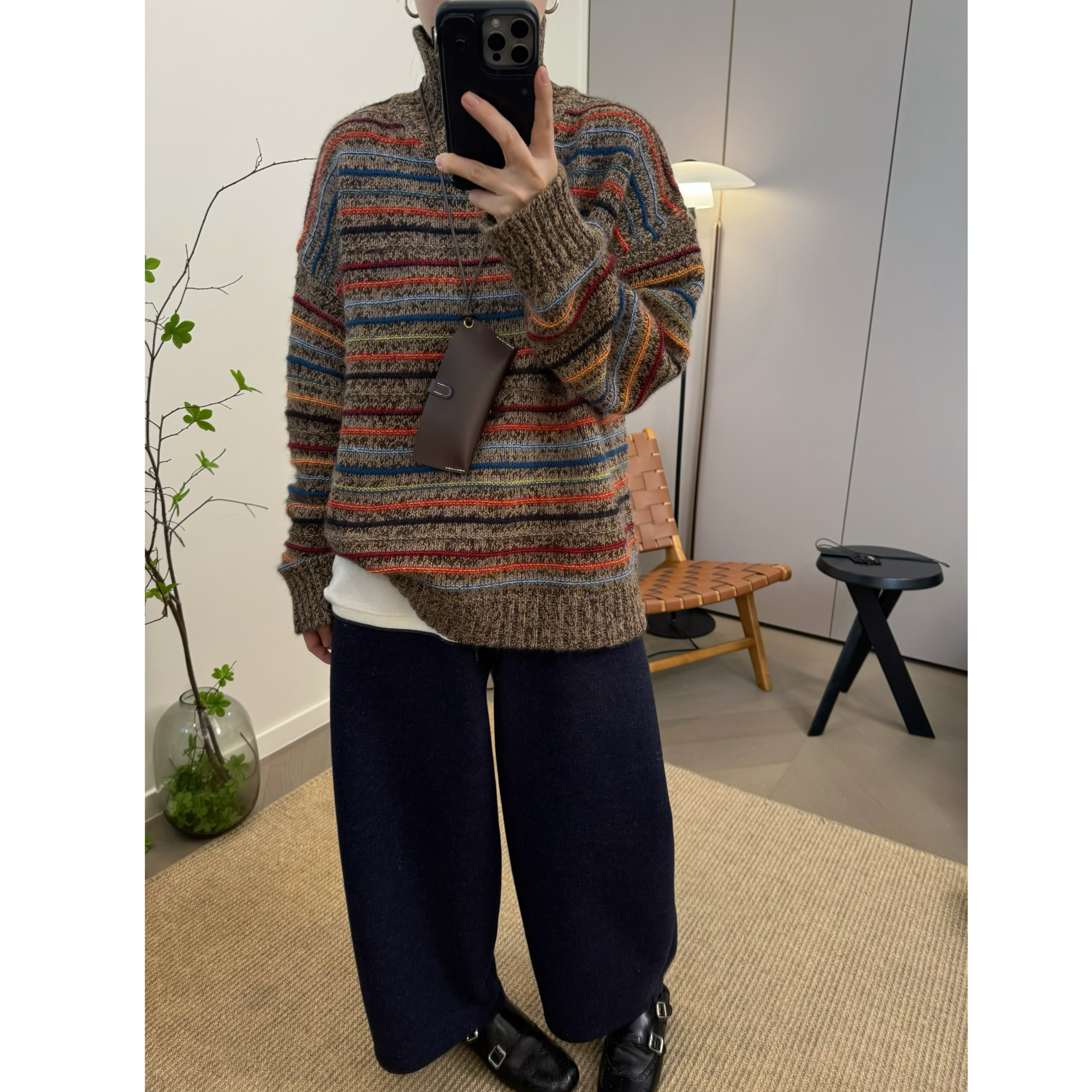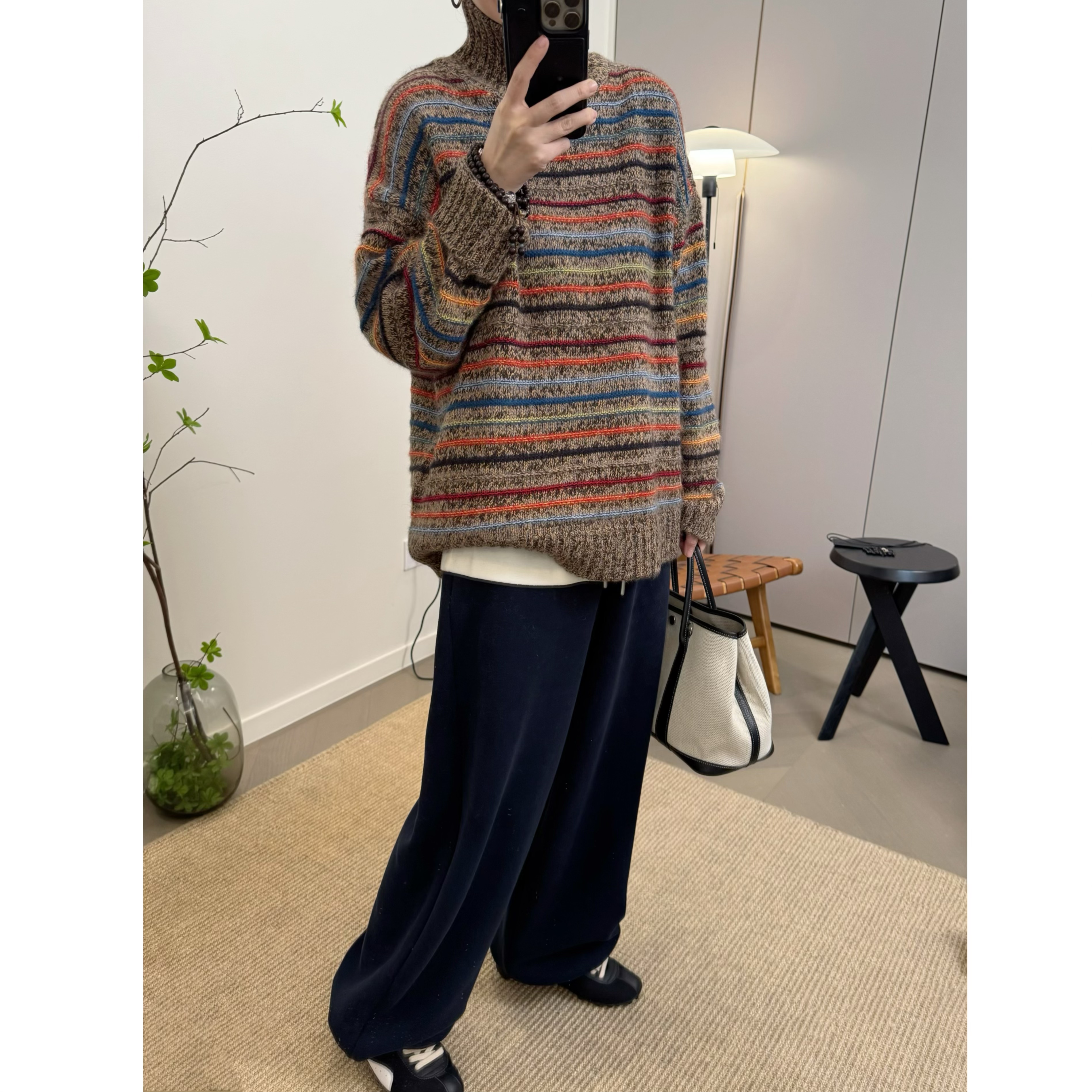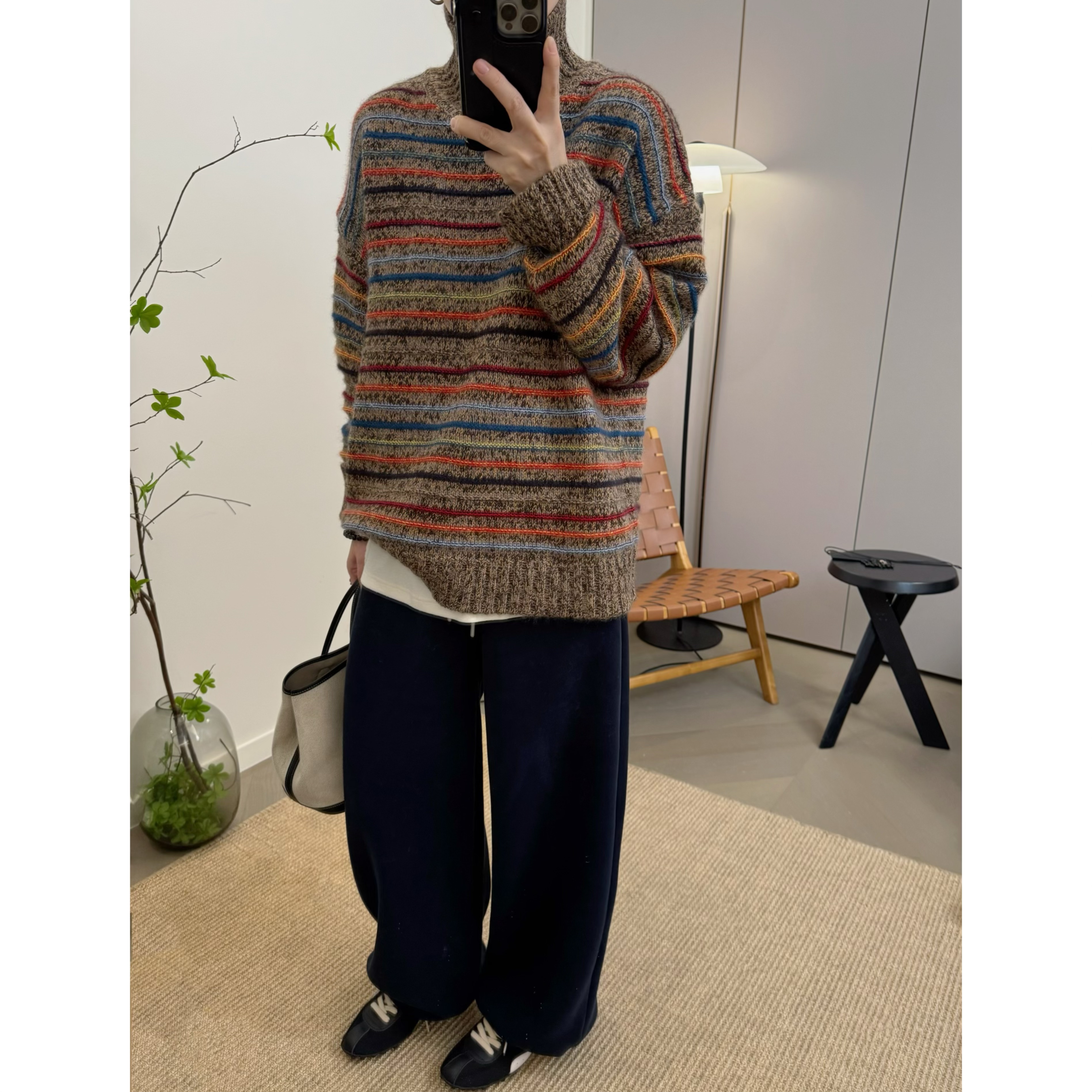 羊绒羊毛彩虹条高品质高领翻领厚套头毛衣 新品 MKDesign 冬季