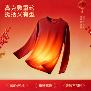 26新年好运红衣服保暖休闲内搭 T恤男冬季 2件装 班尼路重磅纯棉长袖