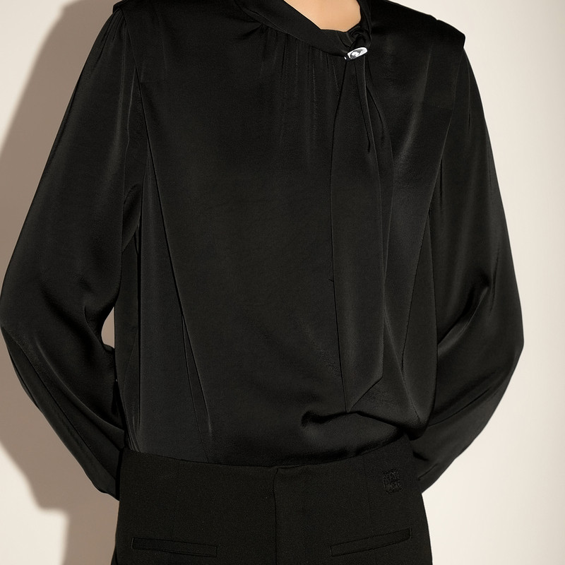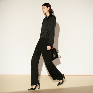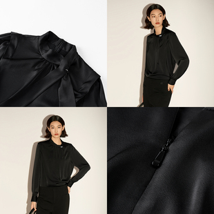 莫代尔顺滑蓝色长袖 女士合体翻领通勤衬衣 衬衫 新款 25秋季 太平鸟