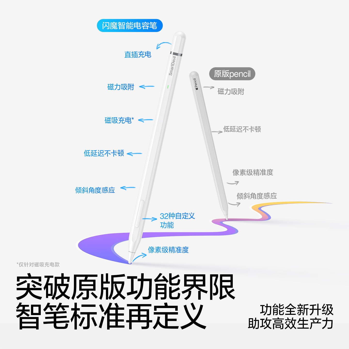 闪魔电容笔ipad触控笔apple pro适用苹果平板手写笔11代十触屏笔6air7一二代平替笔磁吸充电绘画通用 pencil