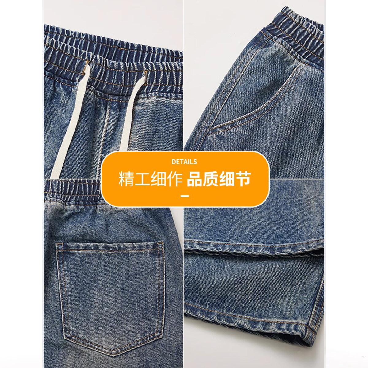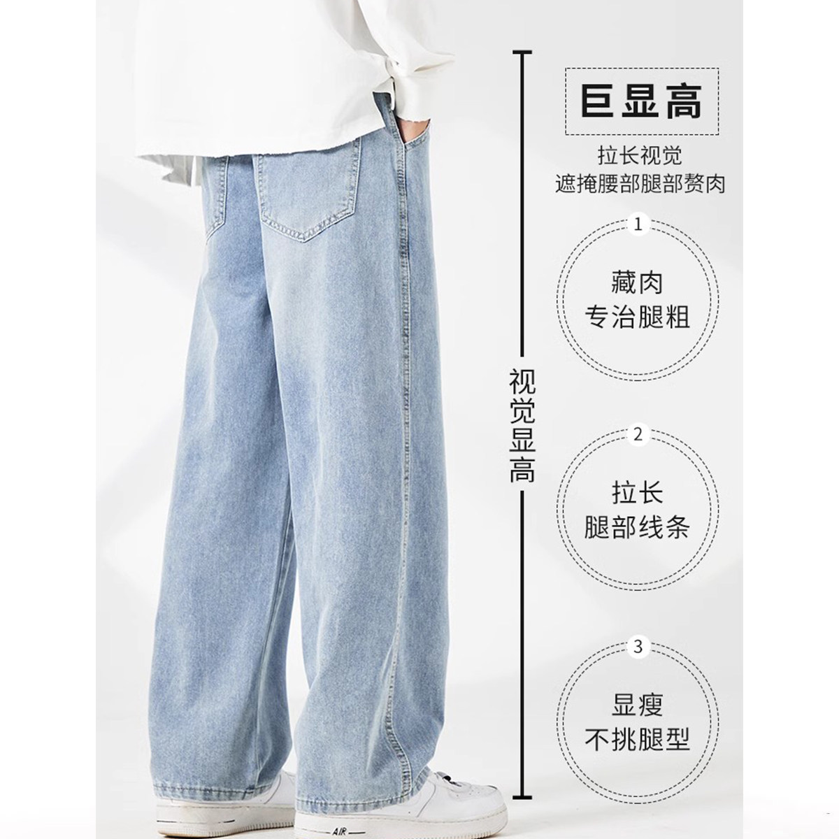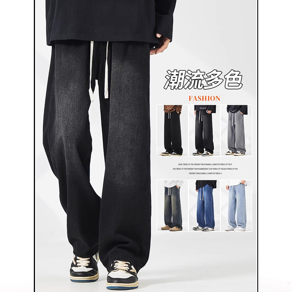 男士 直筒长裤 春夏季 高街潮牌休闲阔腿裤 子 加绒美式 黄泥松紧牛仔裤