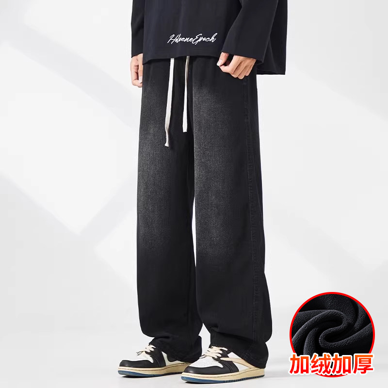 直筒裤 宽松运动裤 子男裤 男士 长裤 男加绒加厚冬季 休闲裤 黑色牛仔裤