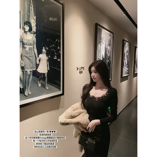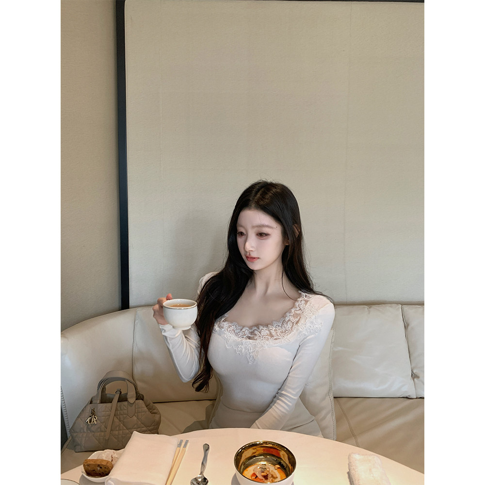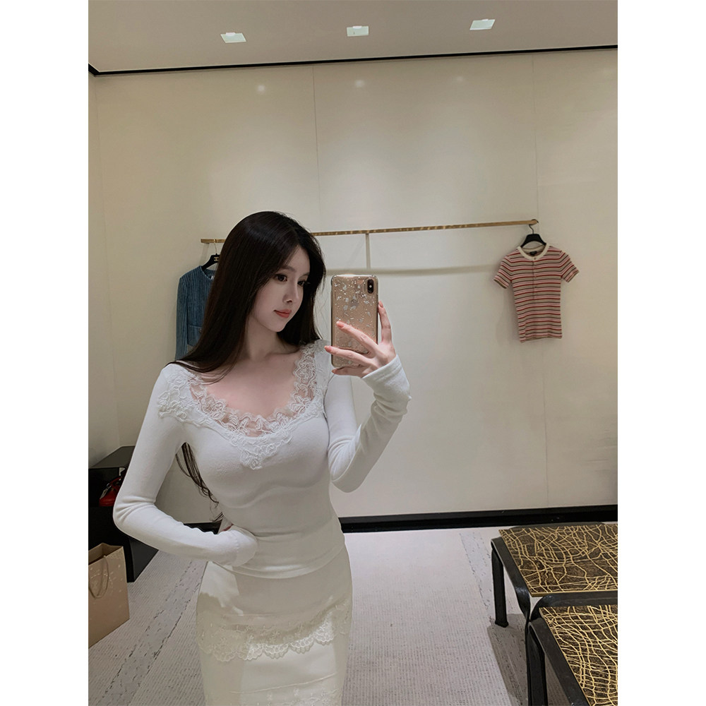 中古毛呢修身 纯手工剪裁蕾丝内搭针织上衣 半裙 SWAN司凰轻奢 THE