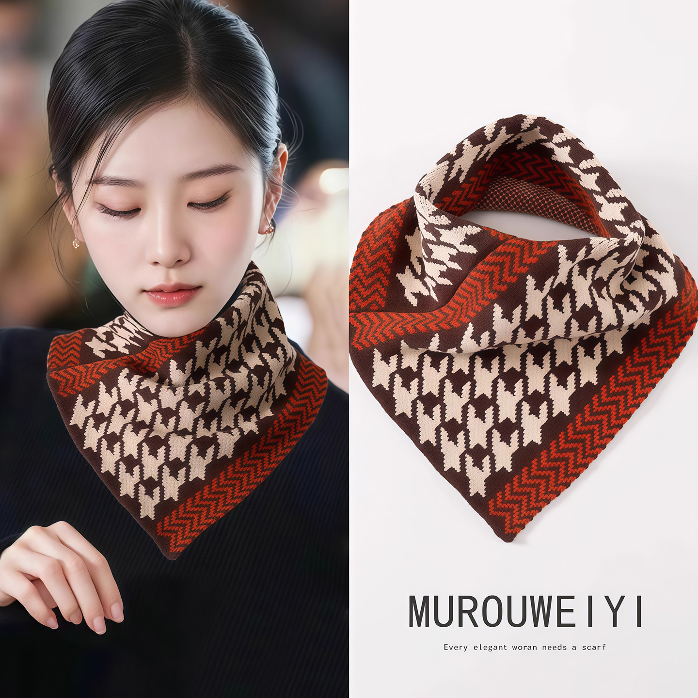 2025三角围巾围脖时尚 千鸟格脖套三角巾头围脖保暖防风防寒护颈套