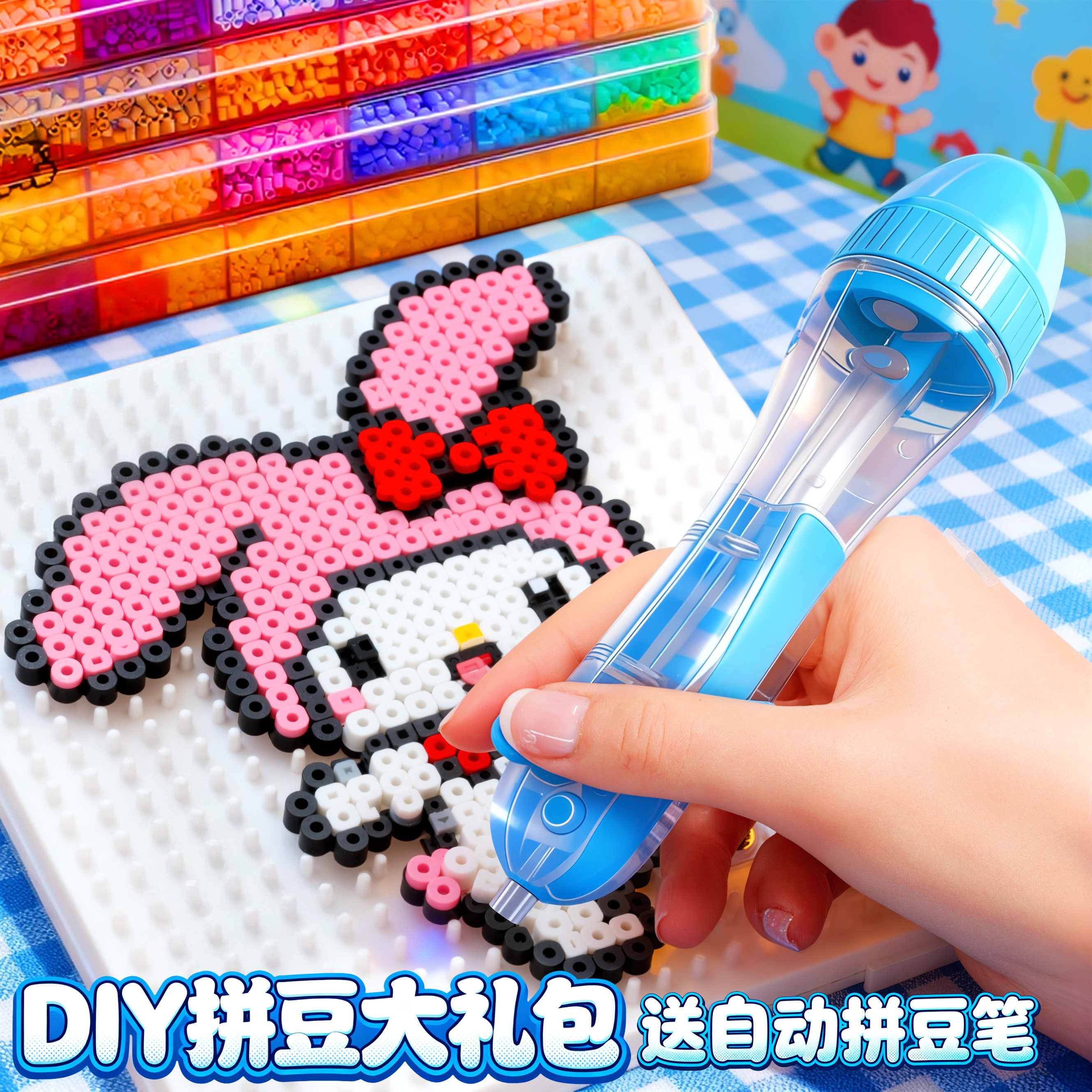 拼豆笔拼豆豆手工diy材料包套装 融合豆儿童玩具全套工具专用熨斗6