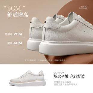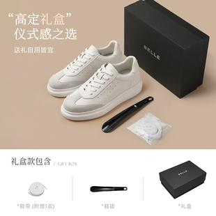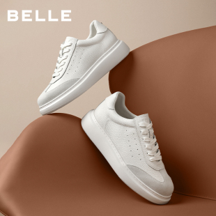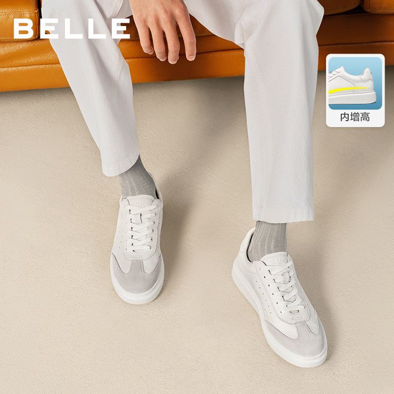厚底休闲德训板鞋 百丽男士 新款 男26春季 D5R05AM6 高级白增高小白鞋