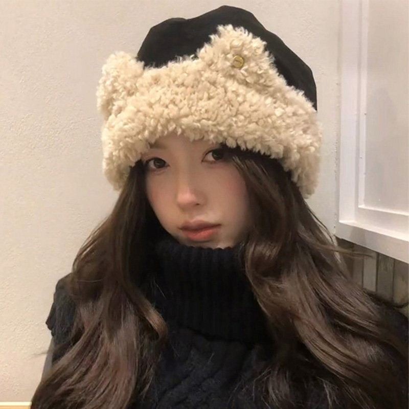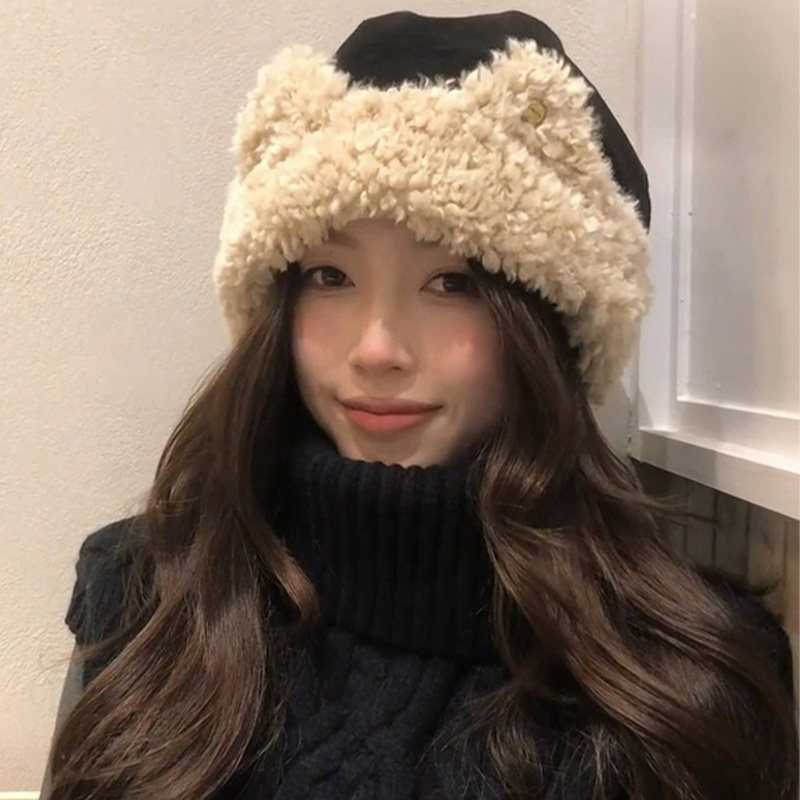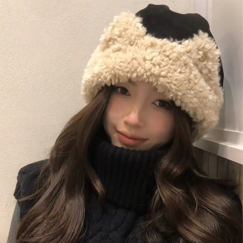 毛绒渔夫帽子女2025冬季 护耳一体防寒保暖显脸小雷锋帽滑雪帽 新款