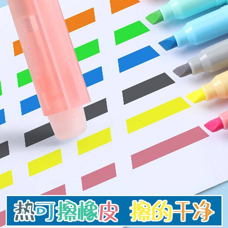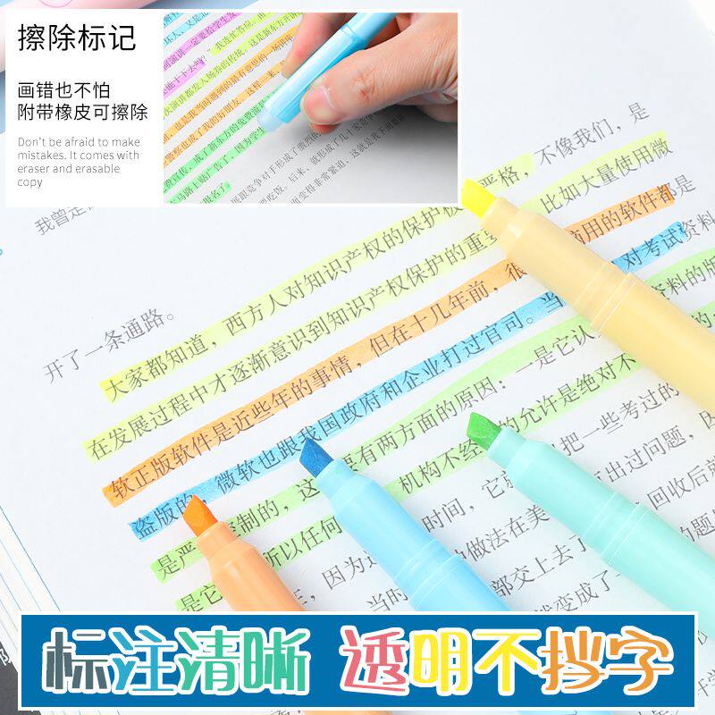 得力抗晕染荧光笔大容量淡色多彩高颜值高中小学生用标记笔划重点手抄报多色彩色笔划重点大容量墨水莹光涂擦