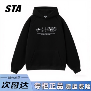 STA旗舰店美式 复古高街灰色外套 潮牌小众设计连帽卫衣男女秋冬季