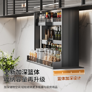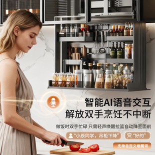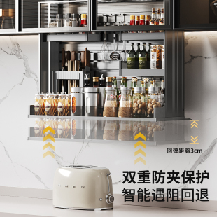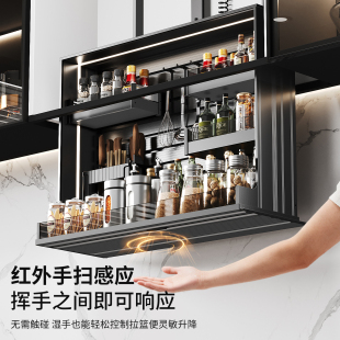 厨房智能触控电动吊柜升降拉篮垂直下拉式 自动语音防夹调味料拉篮