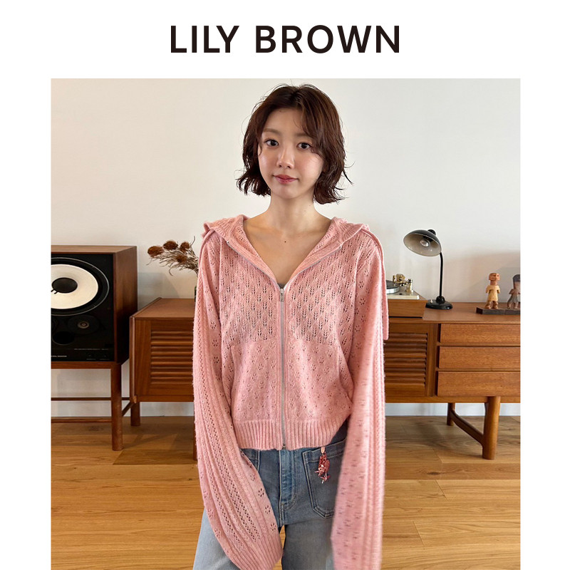 外套LWNT255139 纯色连帽拉链镂空针织开衫 LILY BROWN秋冬款
