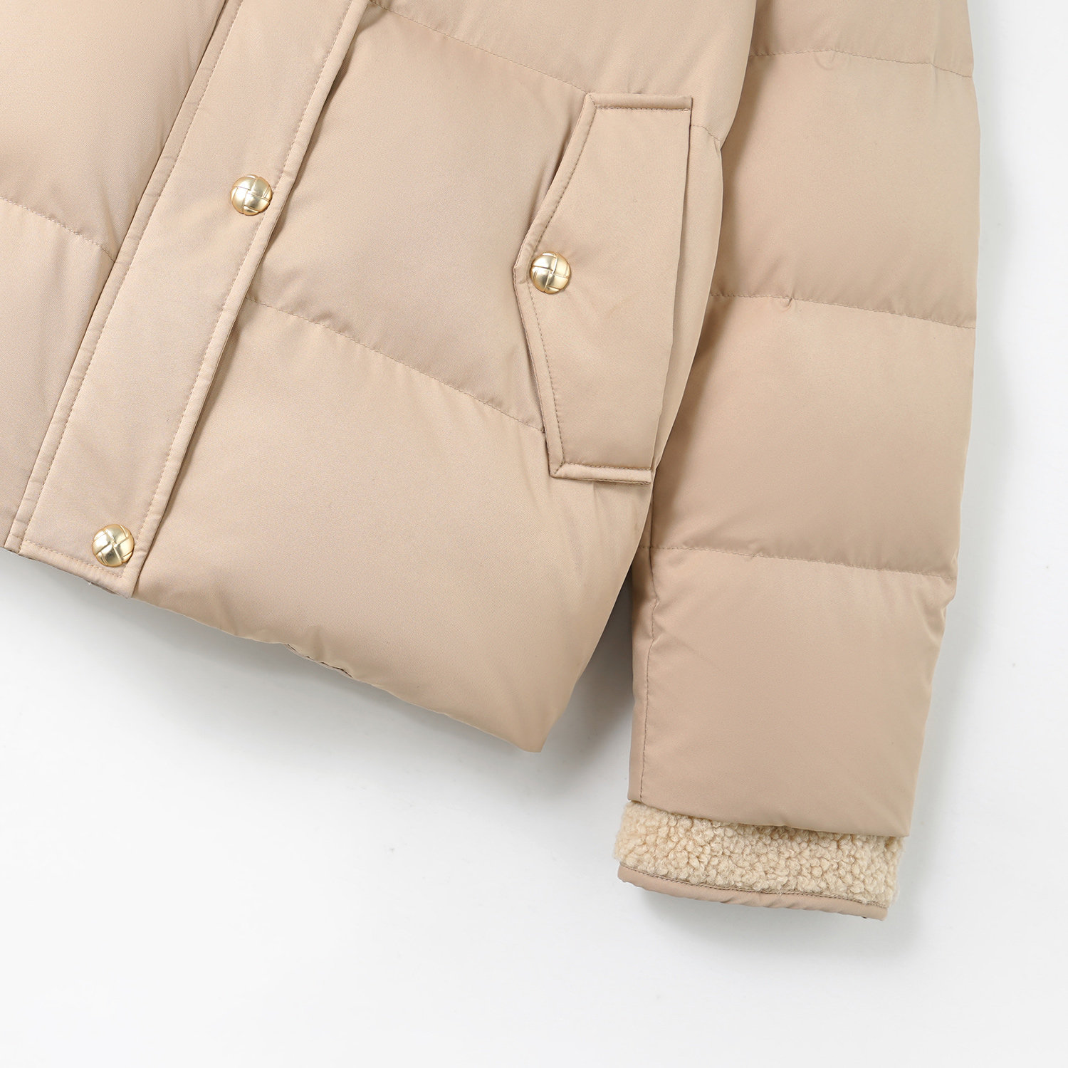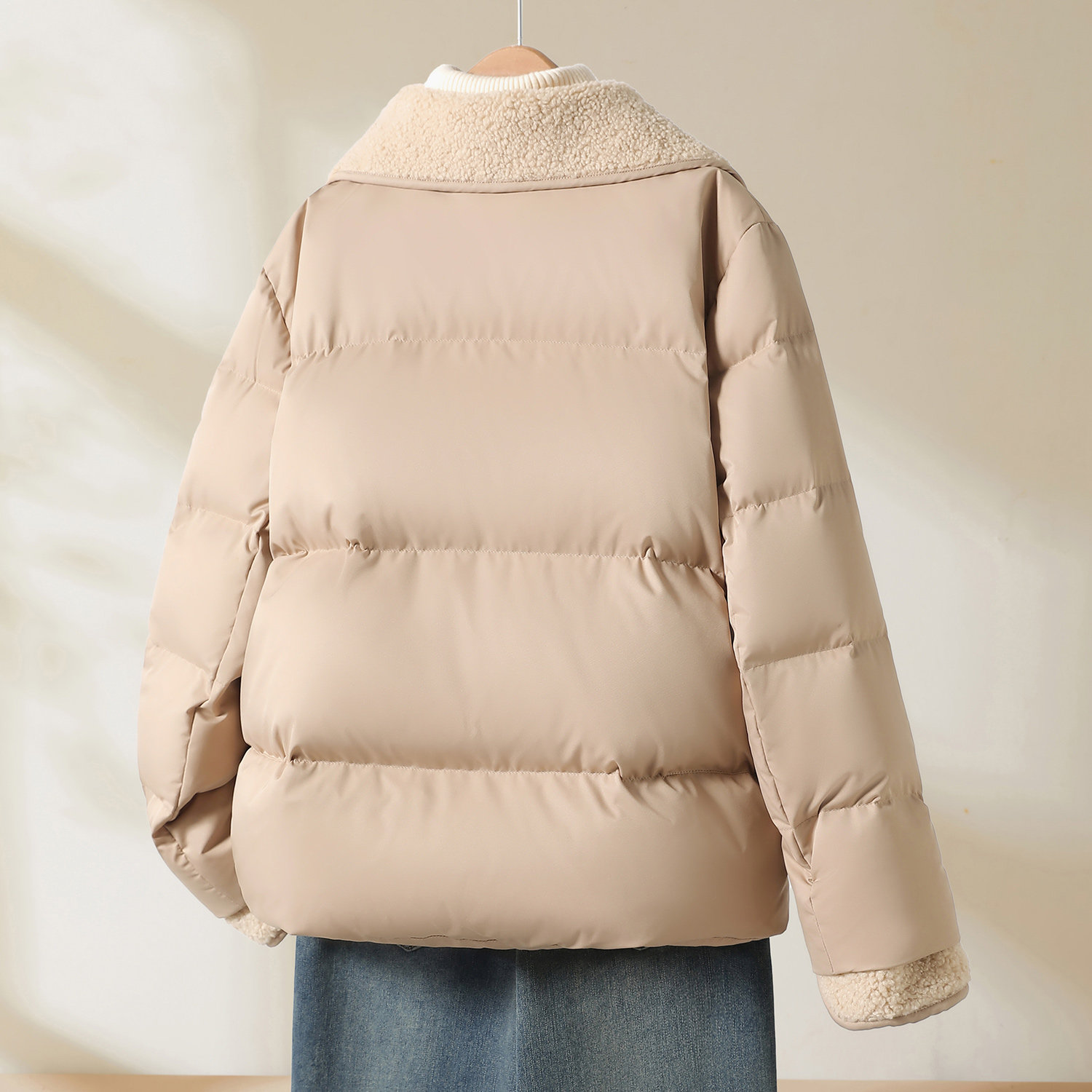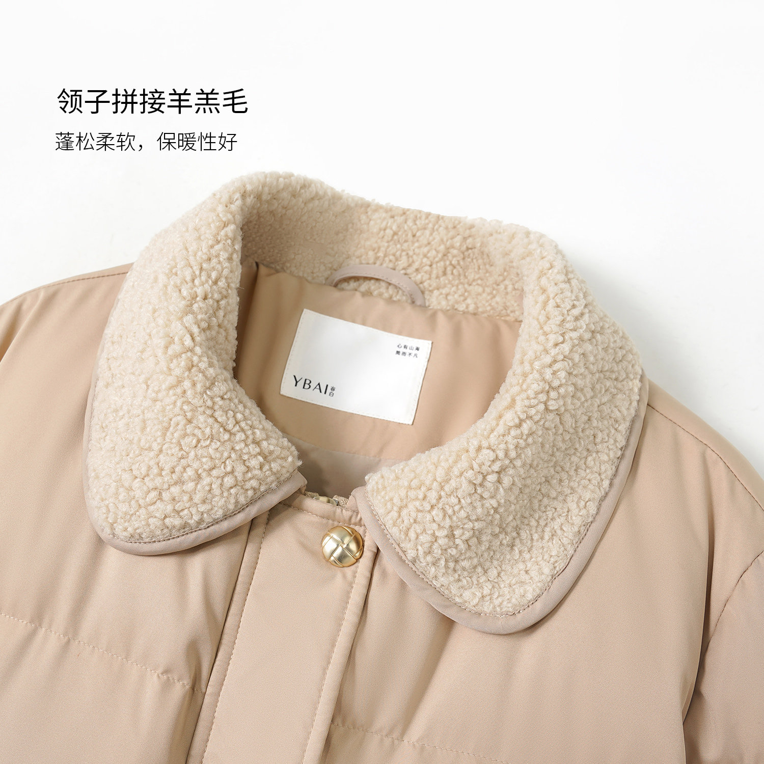 时尚 YBAI 新款 25冬季 简约金属扣羊羔毛拼接羽绒服外套上衣女 亦白