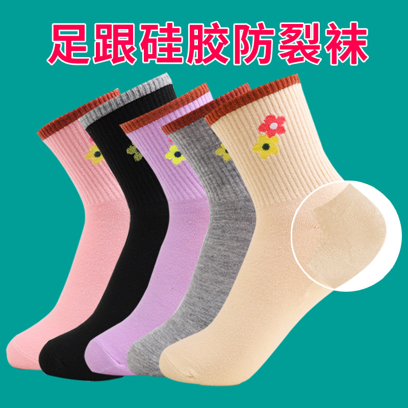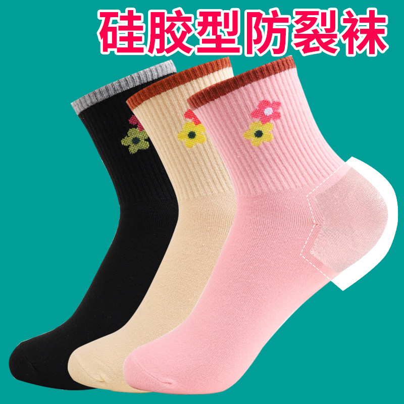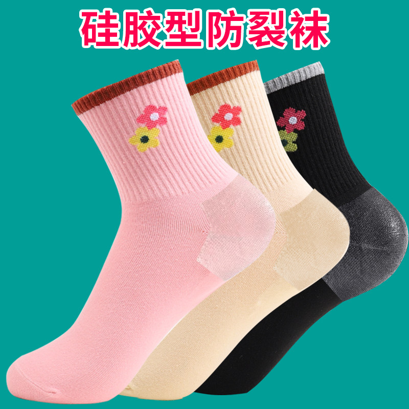 防裂袜子女硅胶保湿 护脚后跟防足裂开裂秋冬防干裂开裂中筒妈妈袜