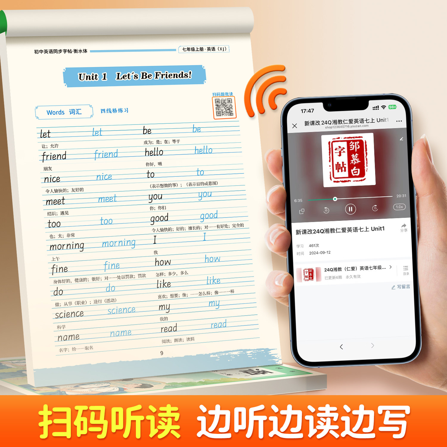 初一初二字母单词练习本英语 衡水体初中七八年级上下册英语练字帖课本同步初中生专用字帖手写体湘教版 邹慕白2025秋新版 仁爱版