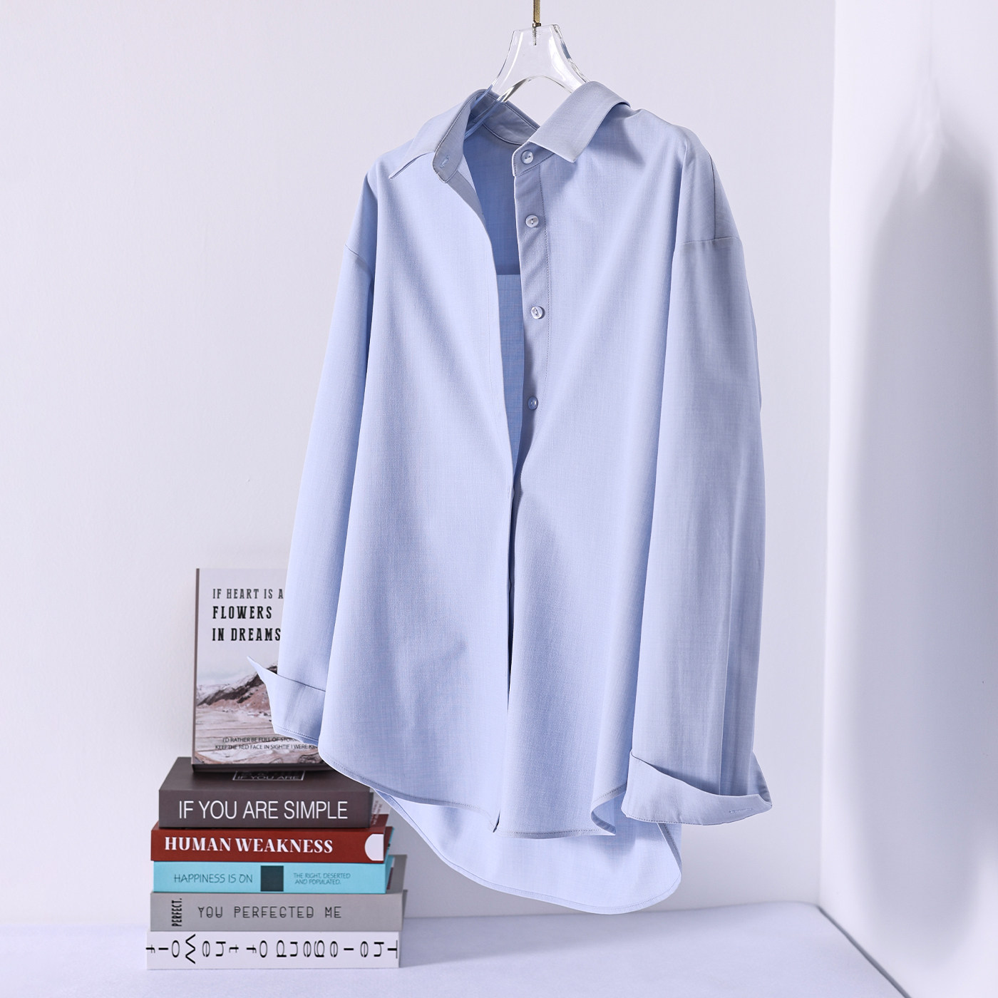 高级感抗皱免烫叠穿白色棉衬衫 女士春秋打底通勤百搭弹力棉衬衣