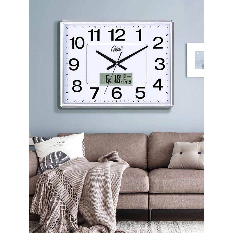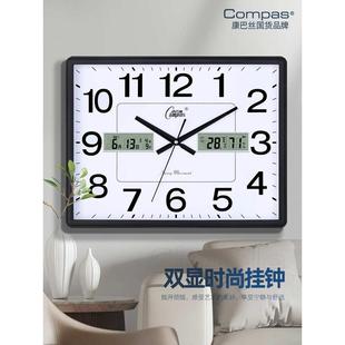 新款 双日历静音挂钟万年历现代温度钟表时钟 大吉大利客厅家用时尚