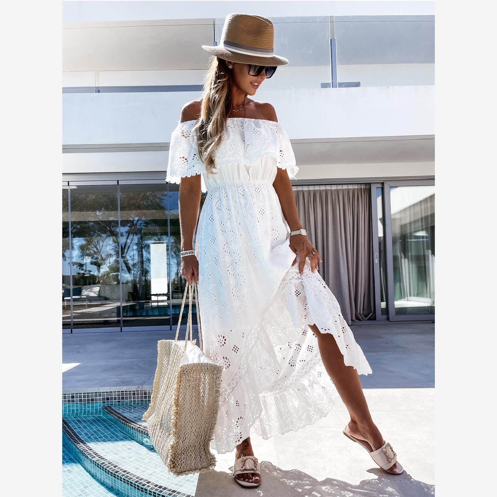 dress dresses Lace 蕾丝裙 beach Long shoulder sexy word