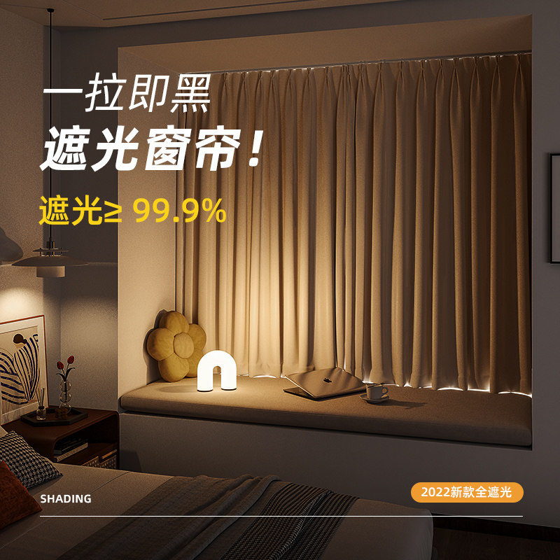 奶茶色窗帘全遮光卧室2024新款 现代轻奢隔音防晒客厅阳台遮阳飘