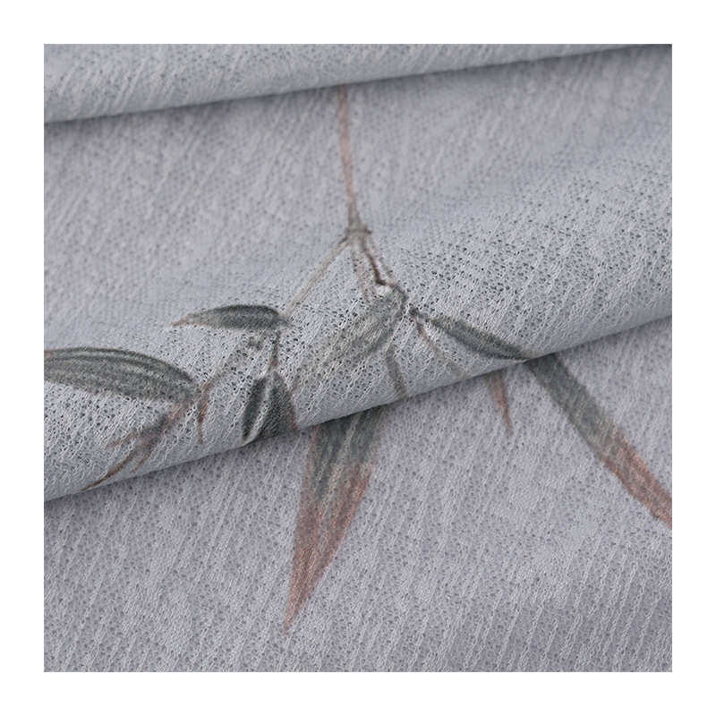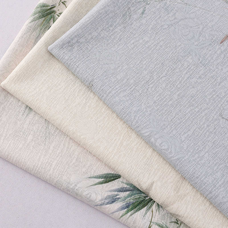 春夏新品 弹力柔软竹叶花印花连衣裙旗袍布料 中国风仿麻提花面料