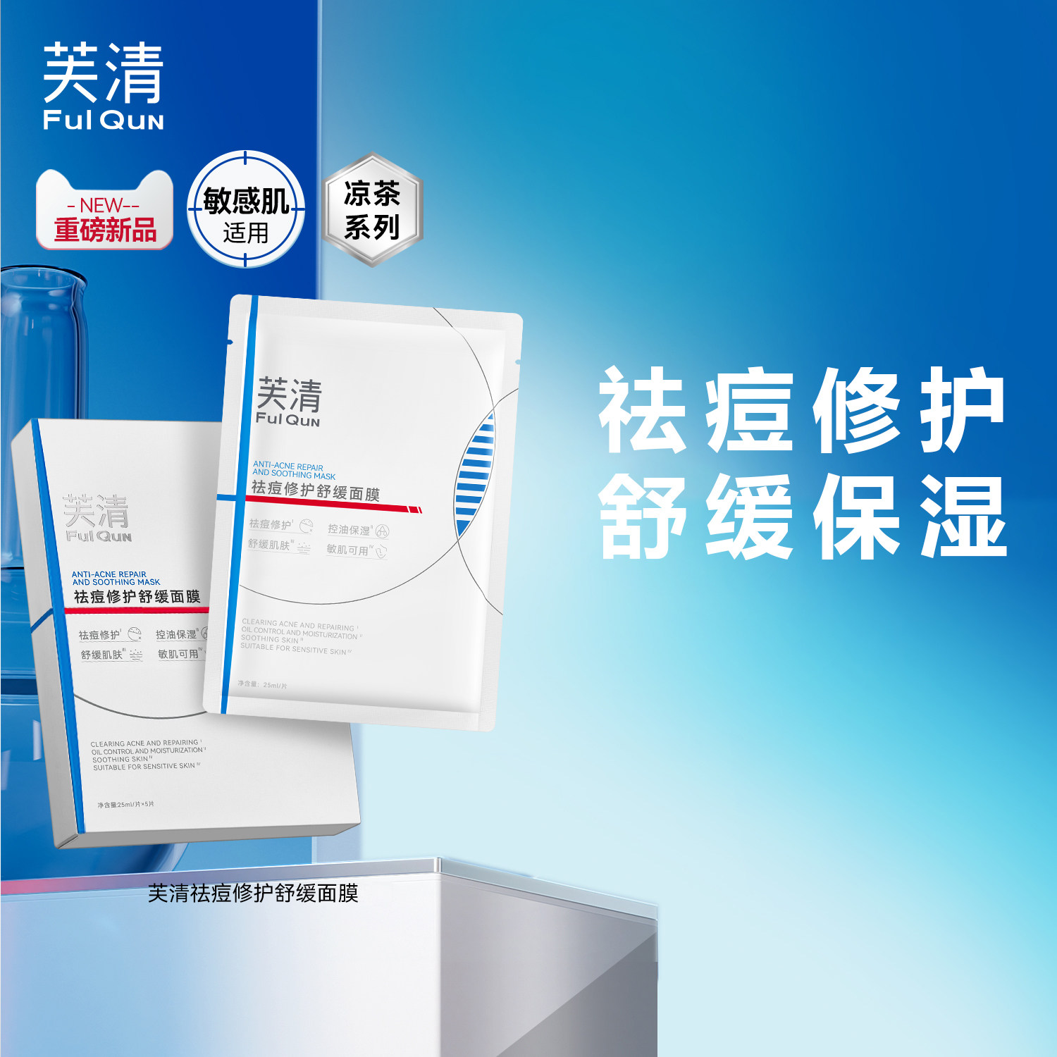 芙清凉茶面膜祛痘修护舒缓面膜控油保湿 祛痘修护舒缓敏感肌可用KY