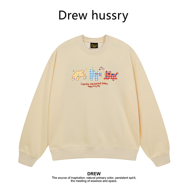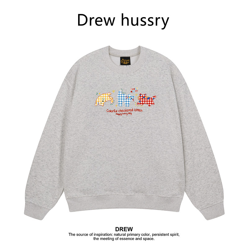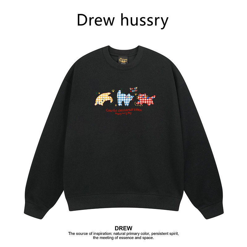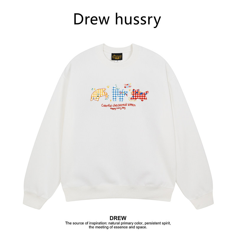 Drew美式 慵懒风上衣 潮牌猫咪卡通印花圆领卫衣春秋东男女情侣款