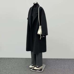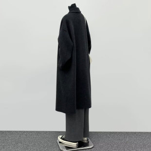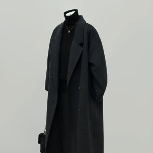 黑灰色双面羊绒大衣女2025新款 韩宽松显瘦慵懒风羊毛呢双排扣外套