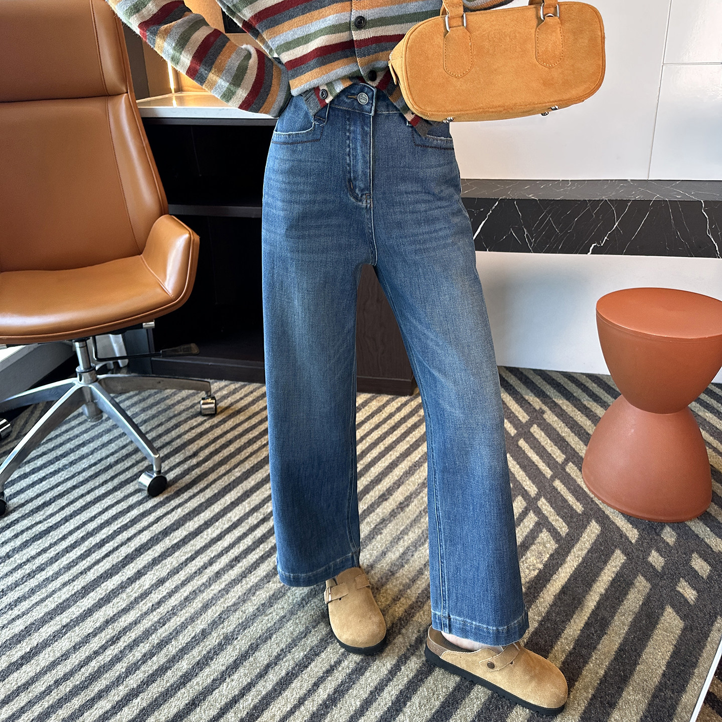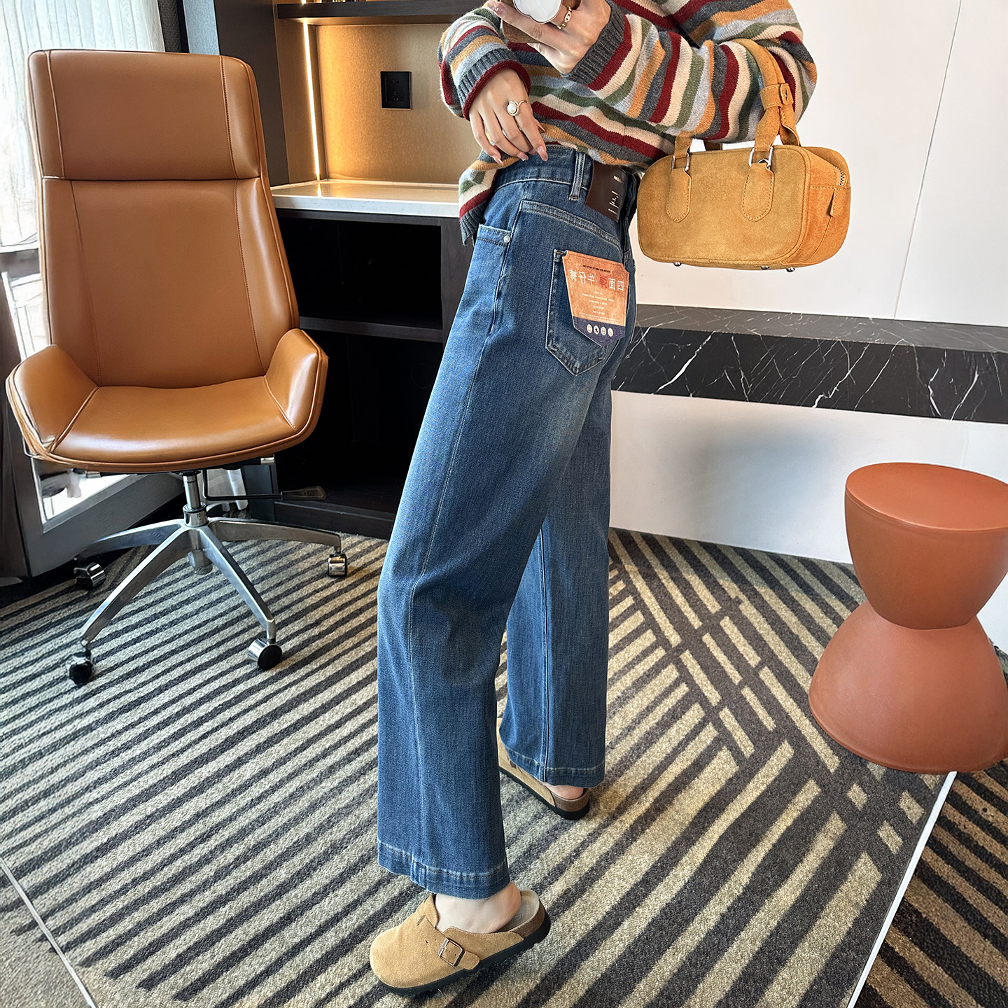 高腰弹力宽松阔腿奶奶裤 man分裤 女2026春新款 九分直筒牛仔裤 型