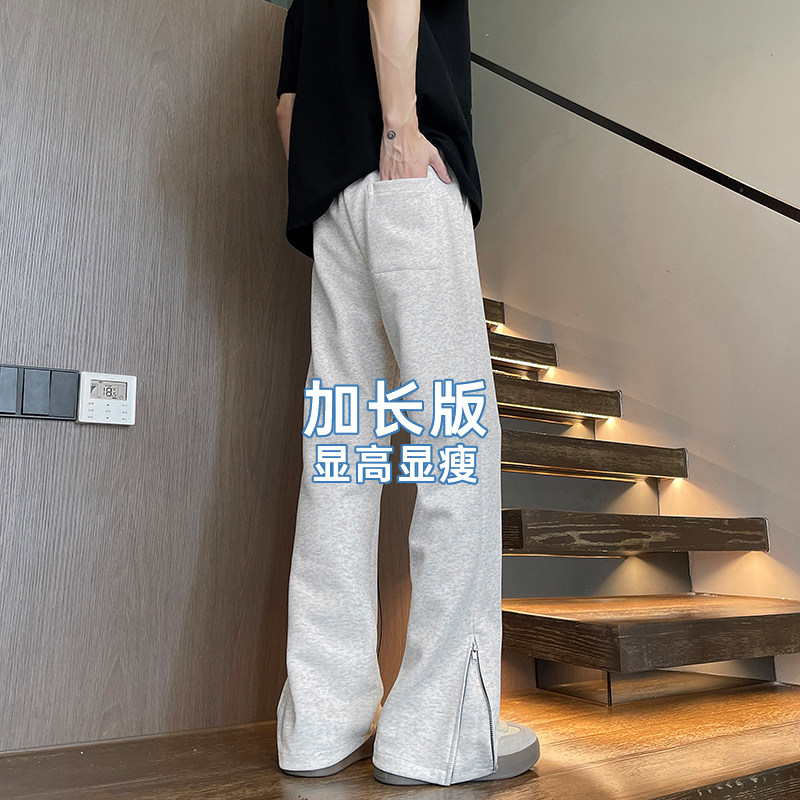 宽松黑色休闲裤 加绒卫裤 子女秋冬运动裤 灰色弯刀裤 长裤 oneup美式