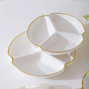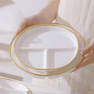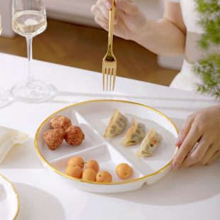 金边分格盘餐具家用分菜盘三格分餐盘早餐盘子陶瓷配菜盘子分隔盘