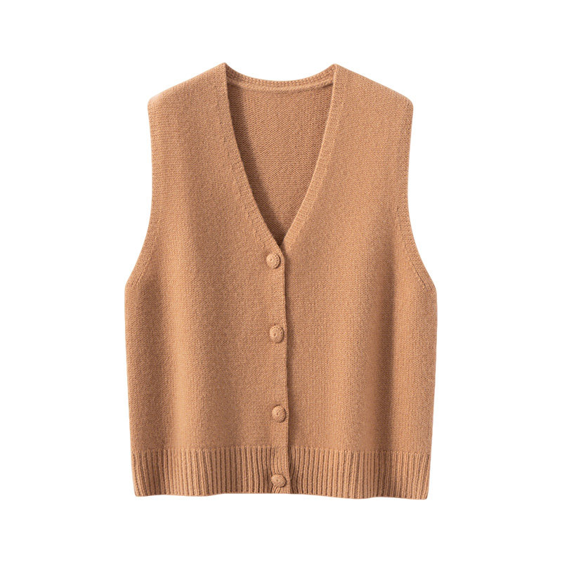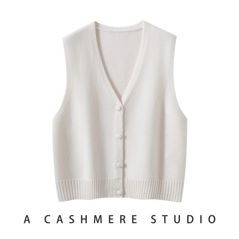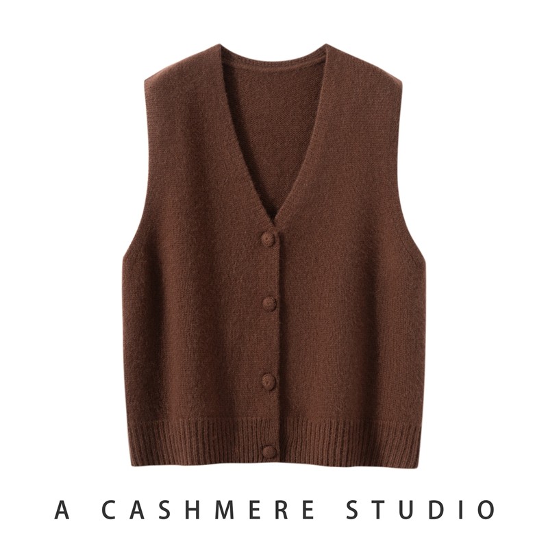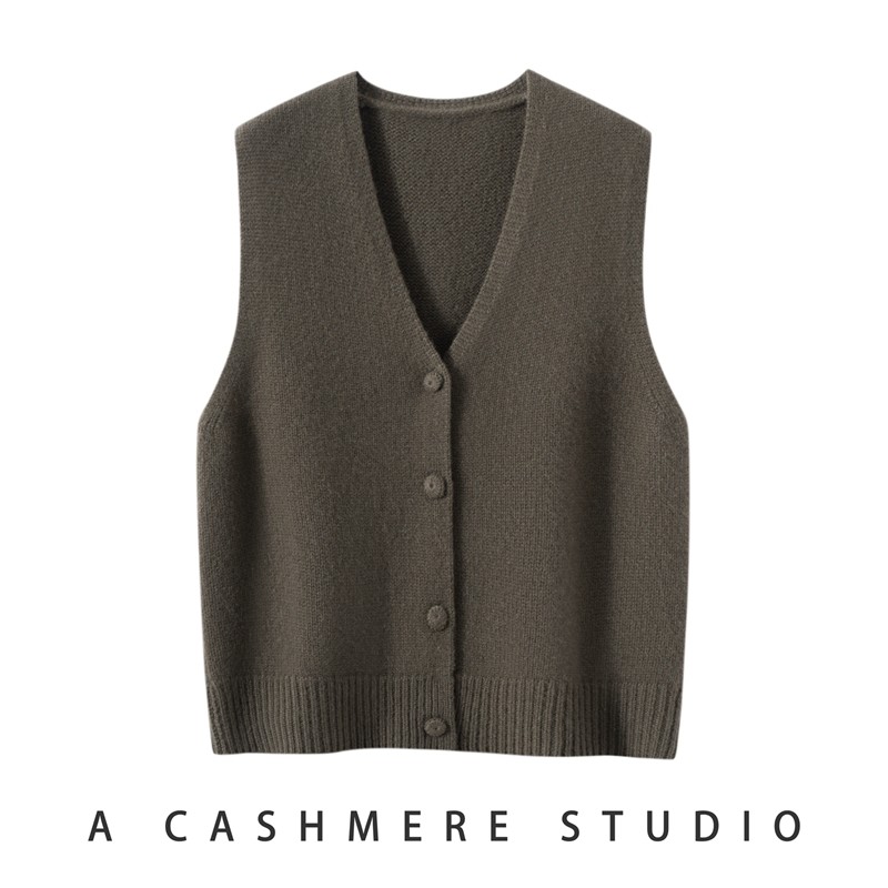 宽松叠穿外搭马甲坎肩 针织开衫 秋冬新款 100纯山羊绒背心女V领无袖