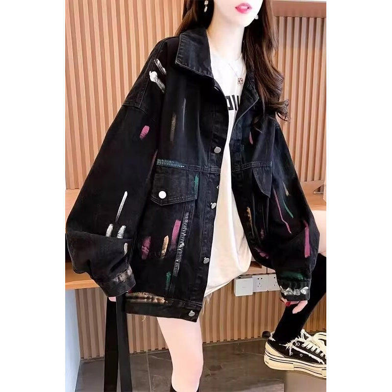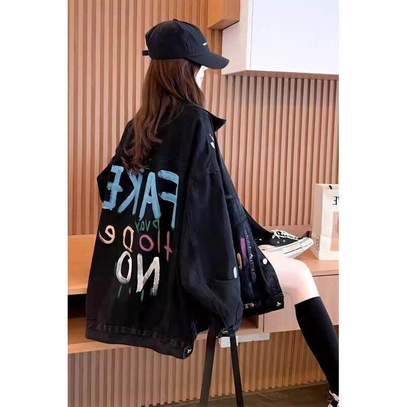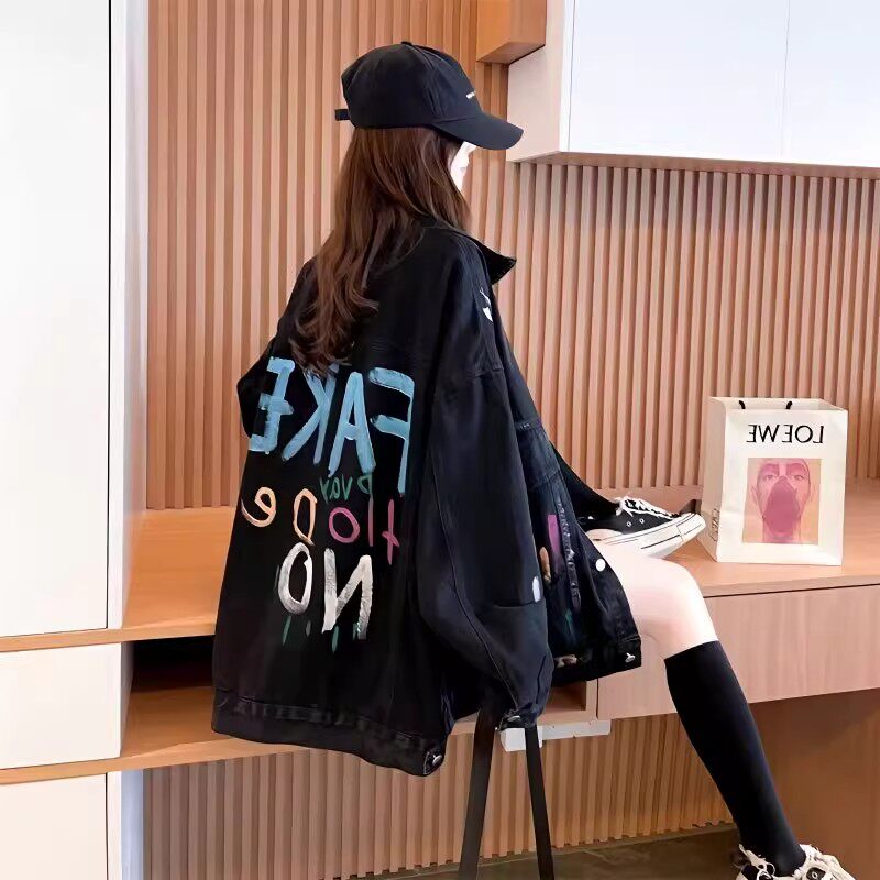 宽松夹克时尚 韩版 牛仔衣潮 胖mm牛仔外套女2025春秋新款 慵懒风大码