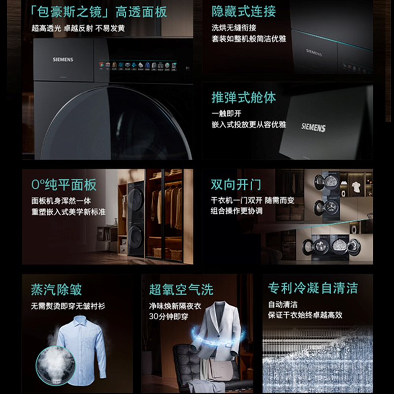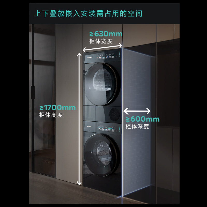 10公斤纯平面板嵌入超氧洗烘套装 WG54M7D20W WQ55M7U20W西门子