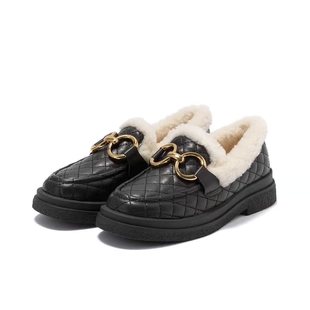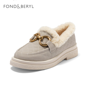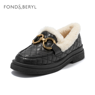 女FB1411A100 羊皮保暖绒里厚底增高乐福鞋 Fondberyl 菲伯丽尔冬季