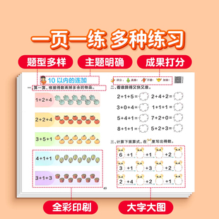 幼小衔接数学10 启蒙每日一练 20以内加减法天天练口算题卡幼儿园学前班中班大班数学思维幼儿练习册一日一练教材儿童5十以内