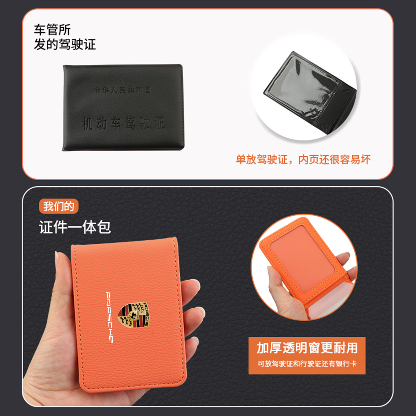 适用保时捷驾驶证件套mancan卡宴911行驶证皮套驾照保护套二合一