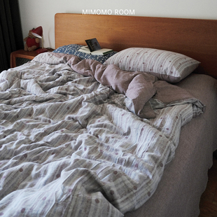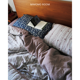 海盐紫波点 侘寂风加厚纯棉皱皱纱1.8m床四件套亲肤助眠床单被套